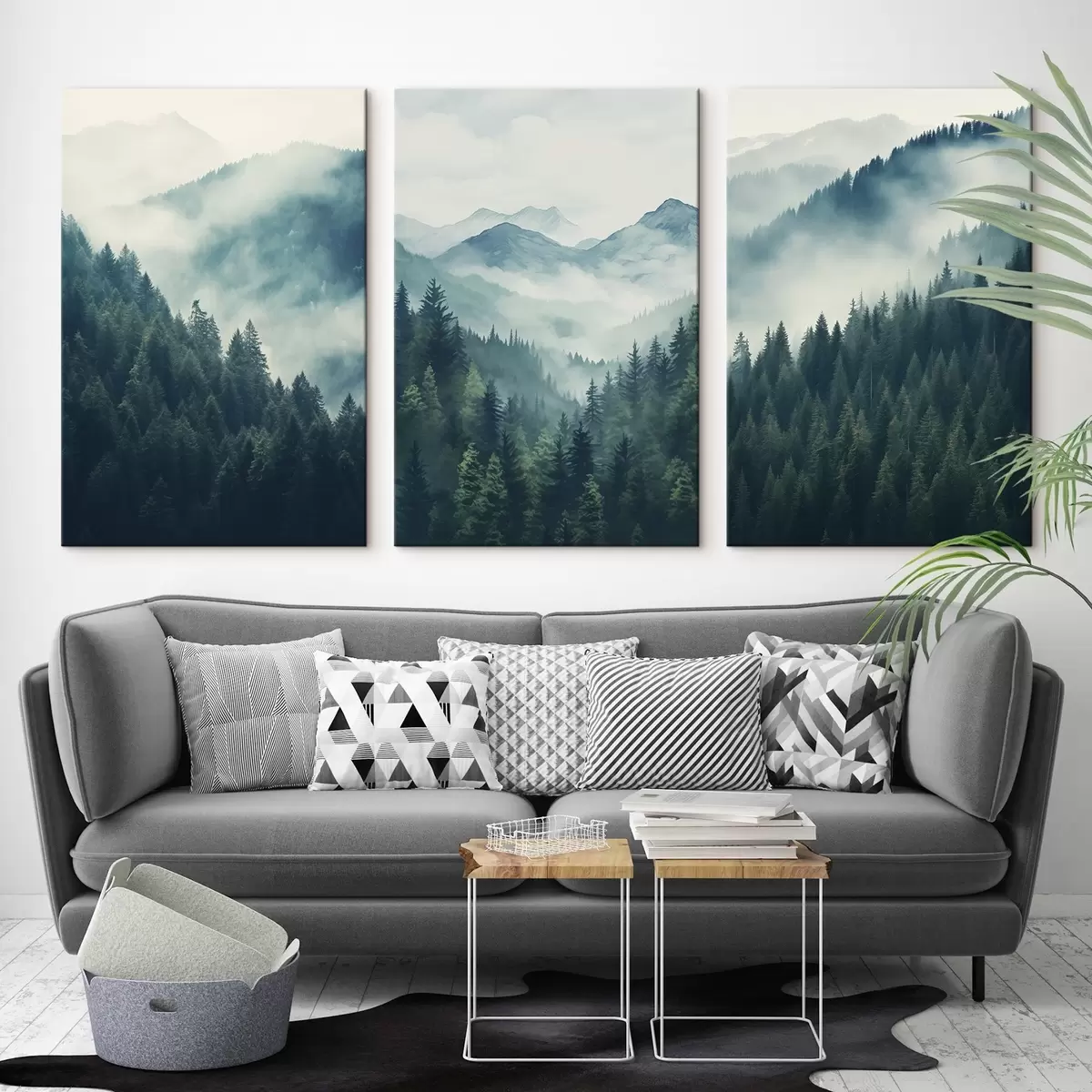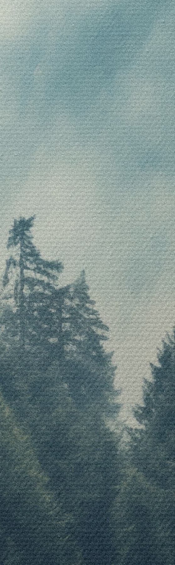 Obraz Mgliste, pokryte sosnami góry, pokryte delikatnymi odcieniami zieleni i błękitu. Nr m00964