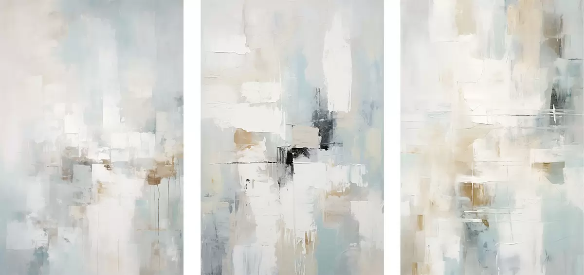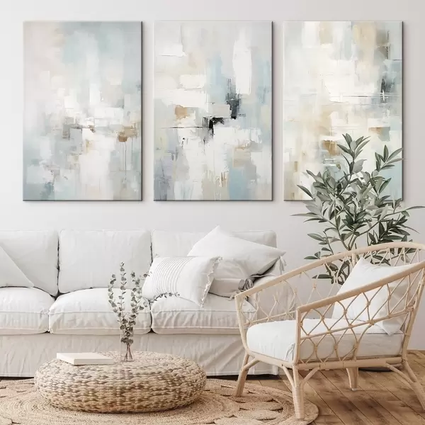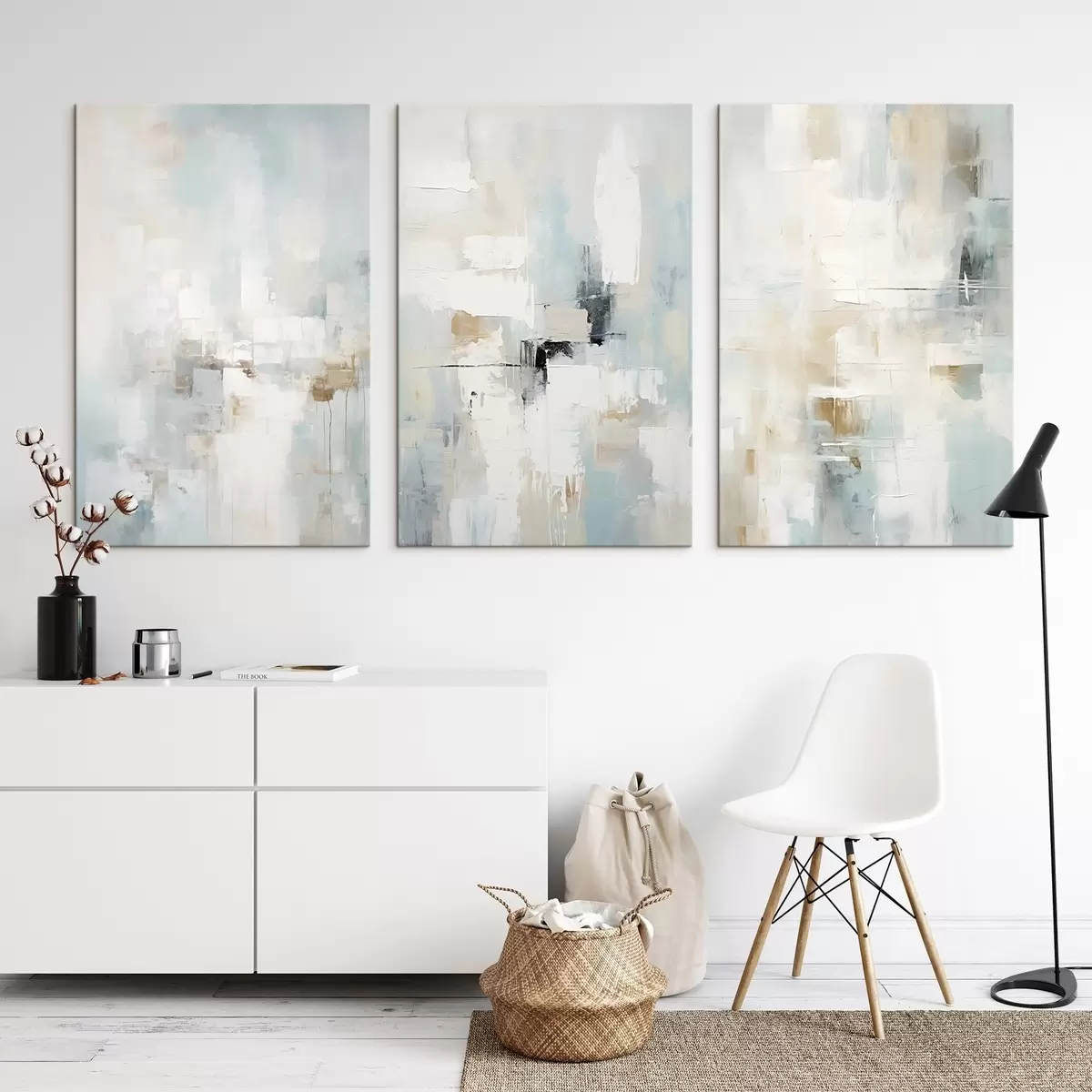 Obraz Jasna, abstrakcyjna paleta: biel, beż i jasnoniebieski Nr m00966