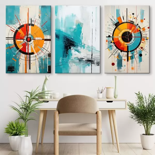 Obraz Promieniowy abstrakcyjny wzór z turkusowymi i pomarańczowymi plamami Nr m00973