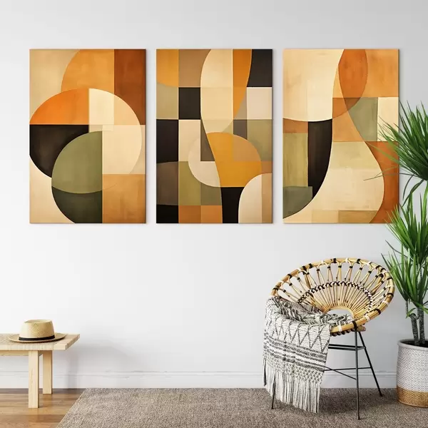 Obraz Miękkie geometryczne bloki w kolorze beżowym, terakotowym i szałwiowym Nr m00975