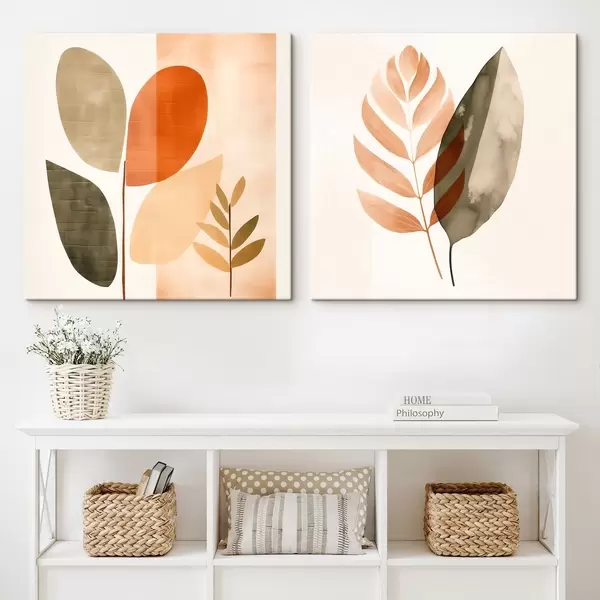 Obraz Dwuczęściowy obraz z motywami roślinnymi w pastelowej kolorystyce Nr m00983