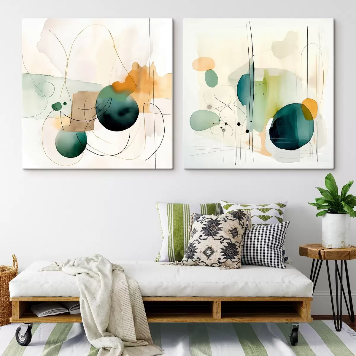 Obraz Dwuczęściowa abstrakcyjna kompozycja z delikatnymi plamami koloru Nr m00985