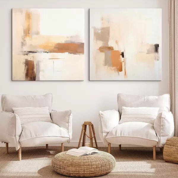 Obraz Stylizowana abstrakcja w ciepłych odcieniach w formacie dyptyku Nr m00988