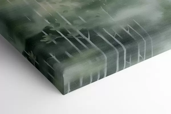 Obraz Akwarelowa imitacja abstrakcyjnego lasu z wysokimi drzewami i zielonymi liśćmi, w delikatnych, stonowanych kolorach. Nr m01005