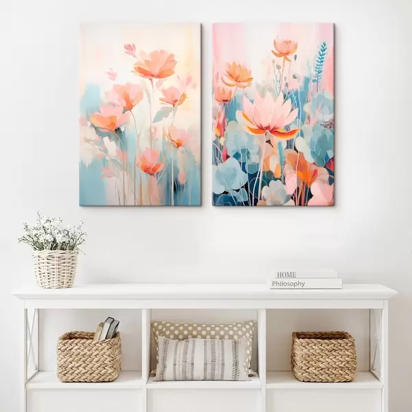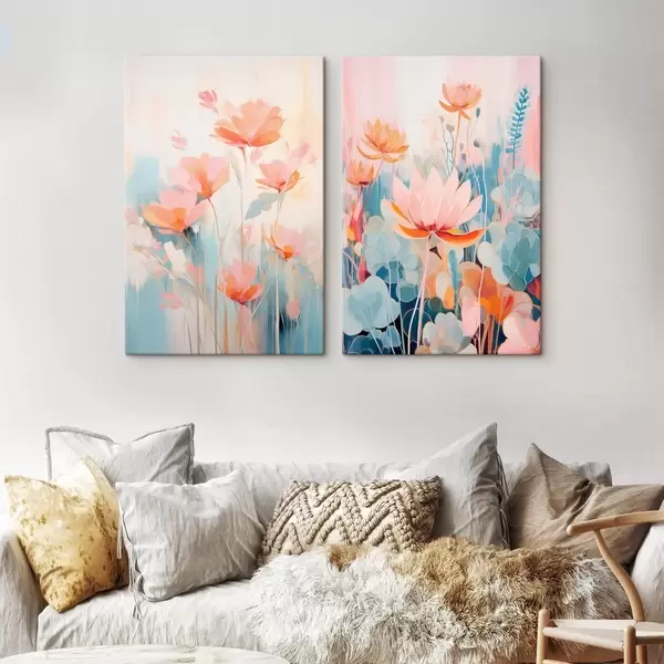 Obraz Akwarelowa harmonia kwiatów w różowo-niebieskiej palecie barw Nr m01084