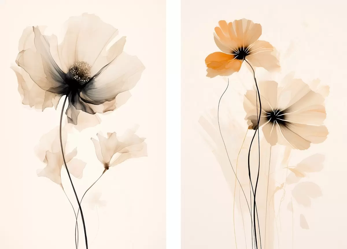 Obraz Jasne akwarelowe maki z delikatnymi cieniami i przestronną przestrzenią Nr m01091