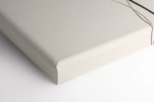 Drobny splot nici na tym płótnie przypomina powierzchnię profesjonalnych płócien artystycznych.