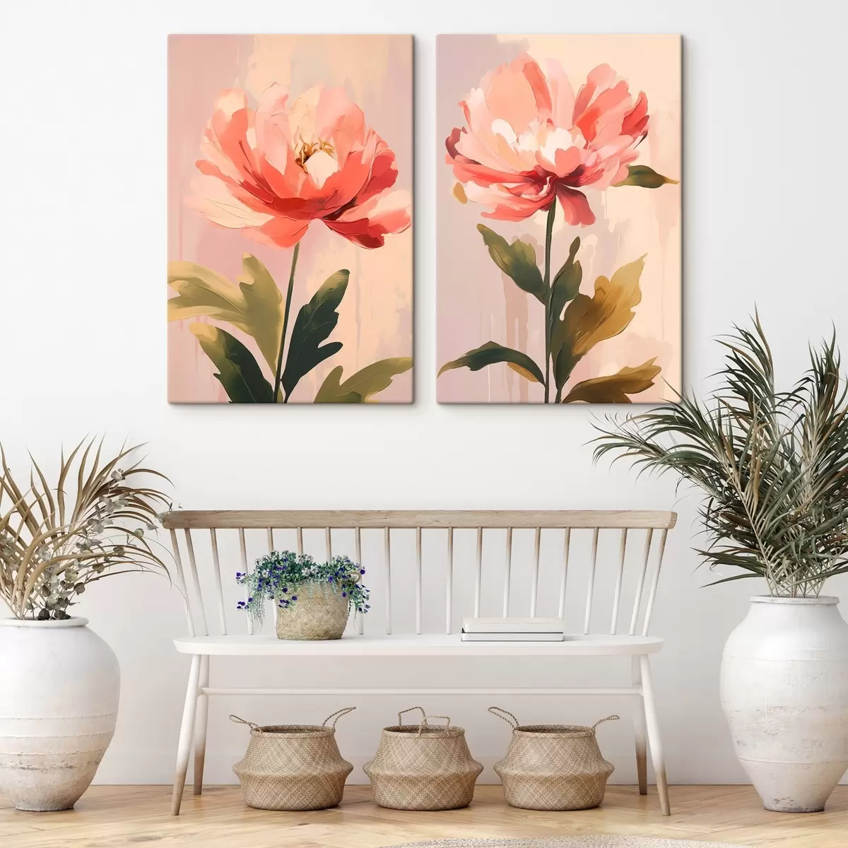 Obraz Pastelowe piwonie na wysokich łodygach w ciepłych odcieniach różu Nr m01093