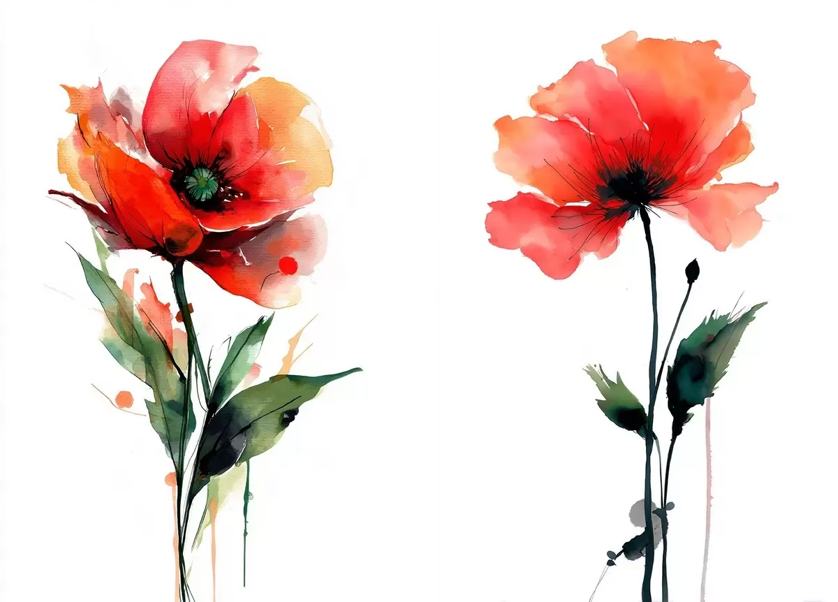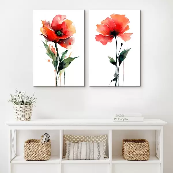 Obraz Kompozycja z czerwonymi makami na białym tle w stylu akwareli Nr m01100