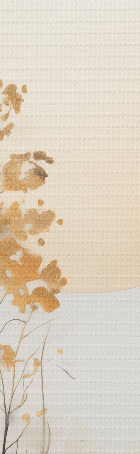 Obraz Dekoracyjny abstrakcyjny krajobraz, wysokie drzewa z żółtymi liśćmi, rzeka i mgła w tle Nr m01115