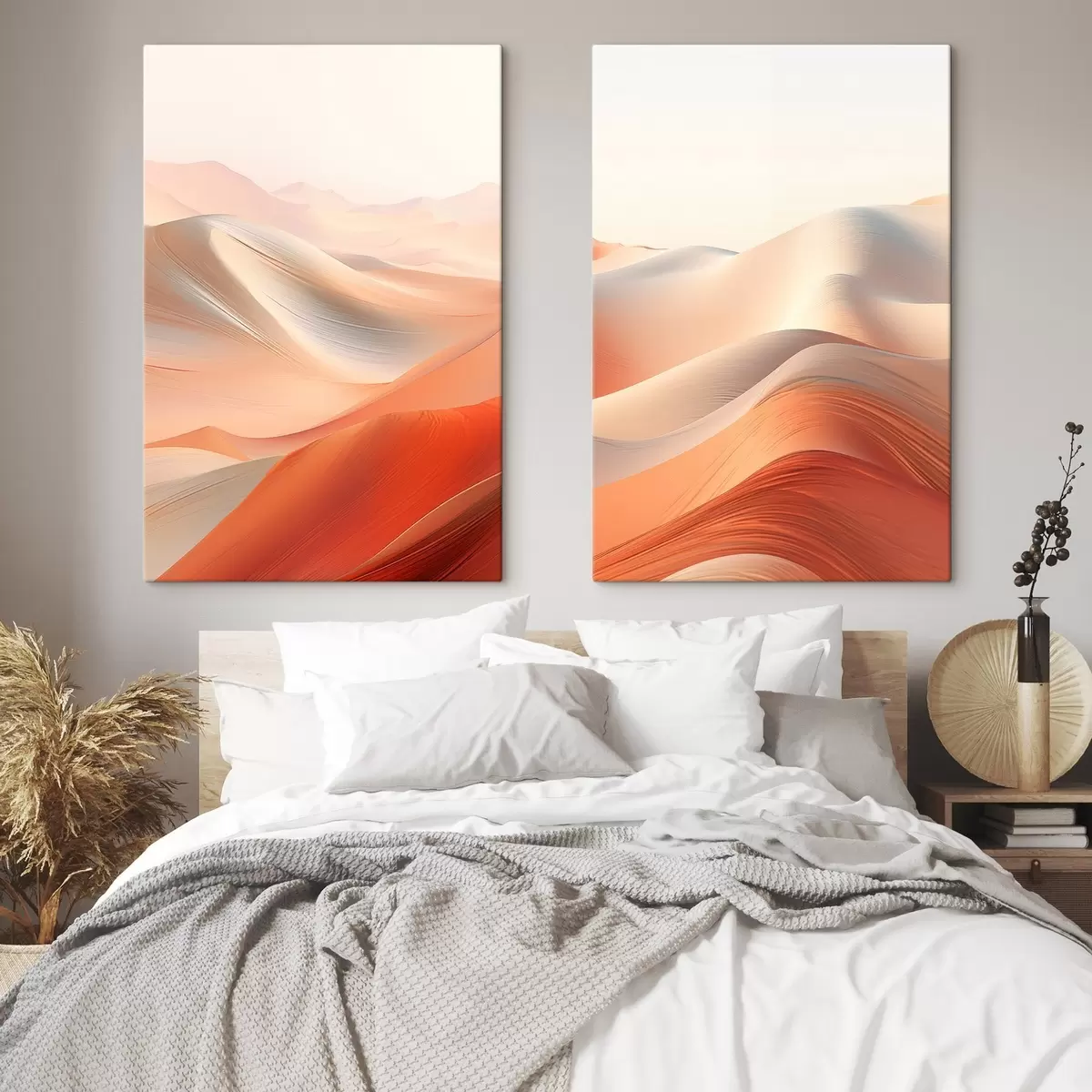 Obraz Abstrakcyjny krajobraz pustynny z płynącymi wydmami w ciepłych odcieniach pomarańczy i bieli. Nr m01123
