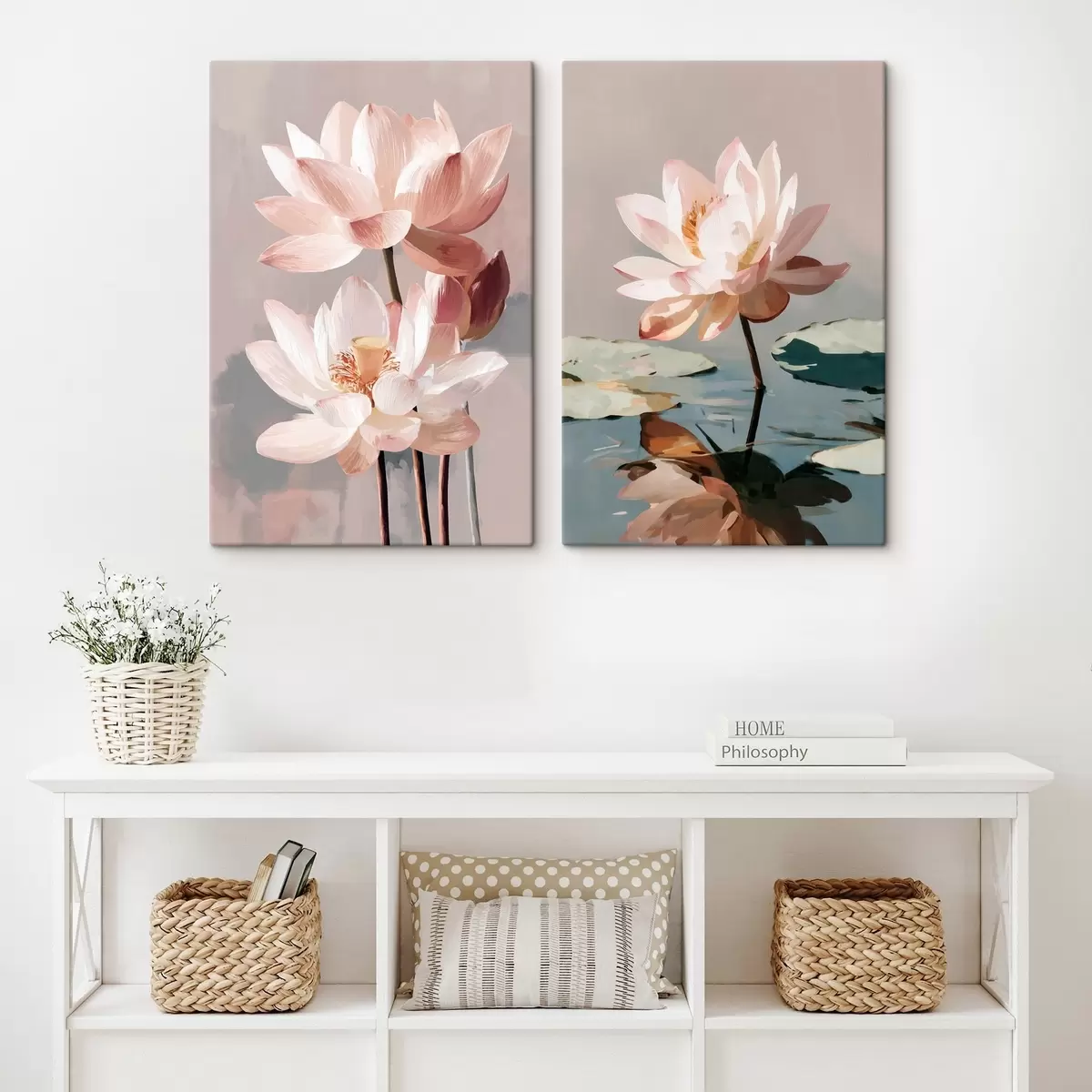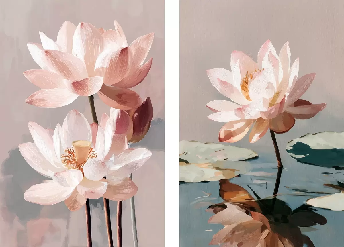 Obraz Delikatne różowe lotosy w nowoczesnym stylu malarstwa cyfrowego Nr m01152