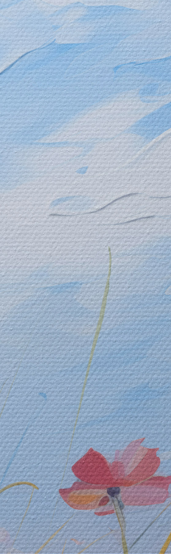 Drobny splot nici na tym płótnie przypomina powierzchnię profesjonalnych płócien artystycznych.