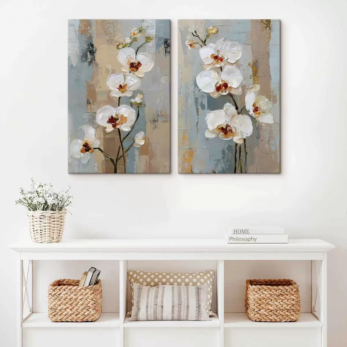 Obraz białe kwiaty orchidei w stylu malarstwa olejnego Nr m01175