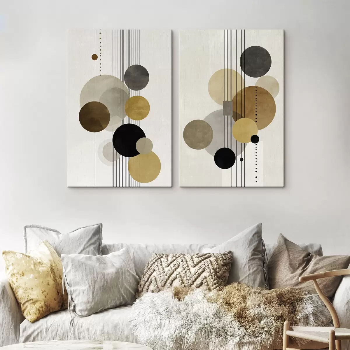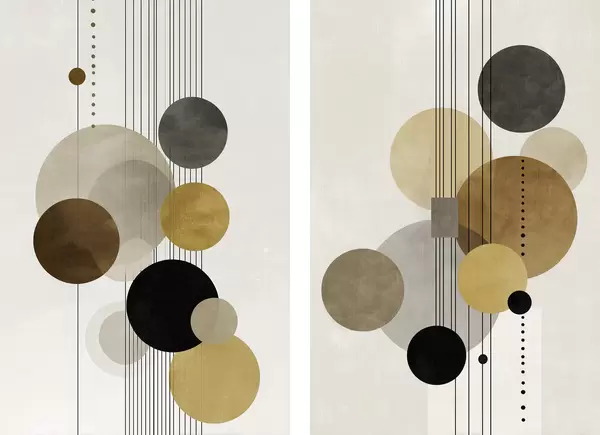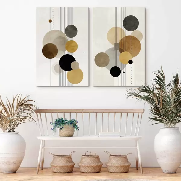 Obraz abstrakcja z okręgami i liniami w ciepłych kolorach Nr m01182