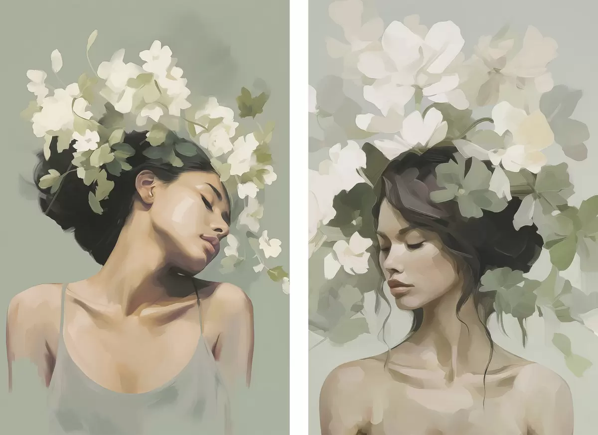 Obraz Dziewczyna w wieńcu z kwiatów Nr m30007