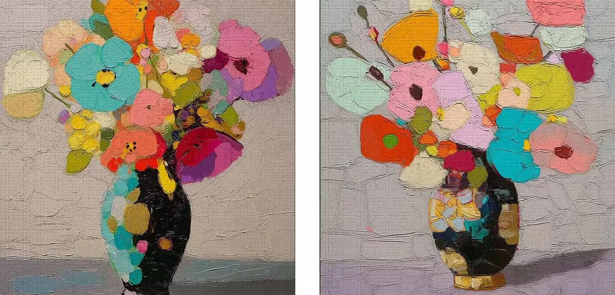 Drobny splot nici na tym płótnie przypomina powierzchnię profesjonalnych płócien artystycznych.