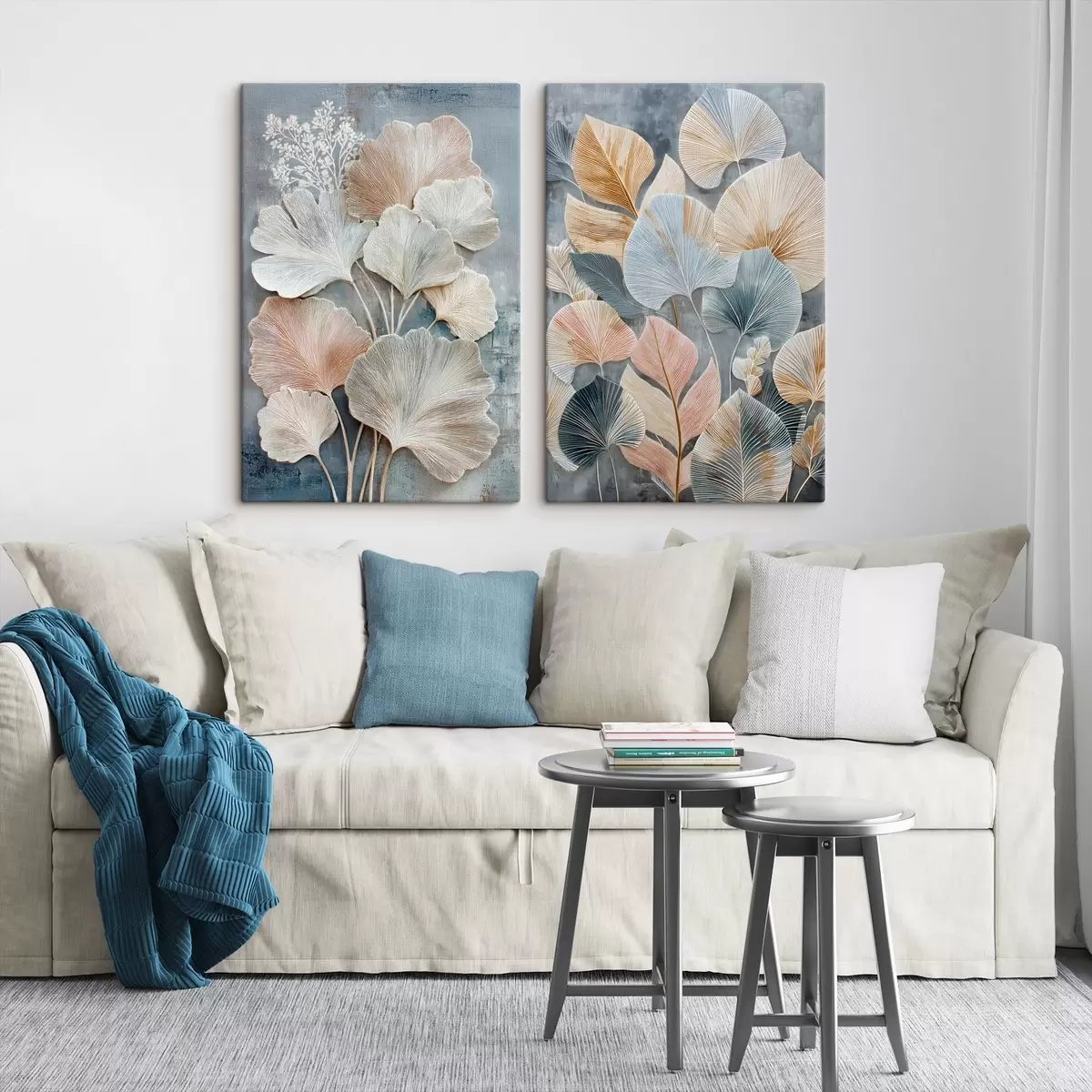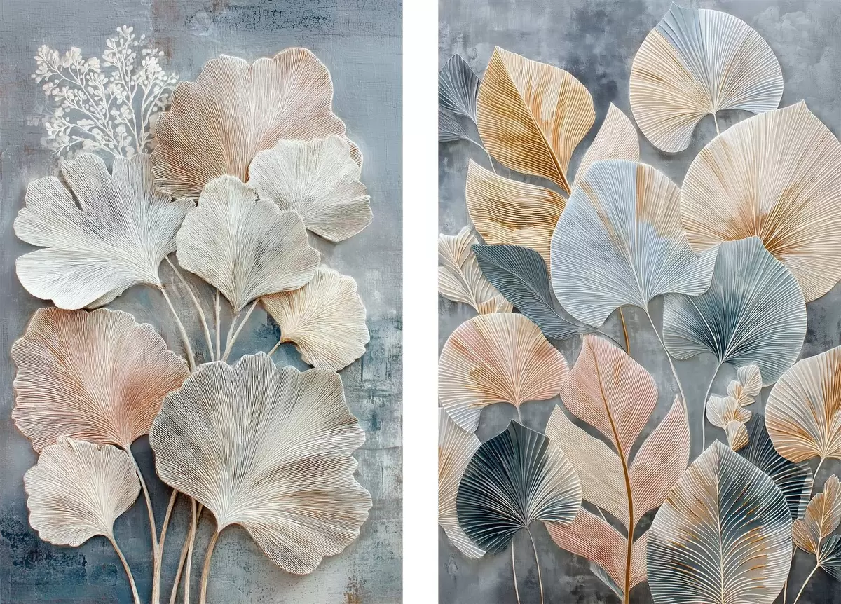 Obraz Abstrakcyjna kompozycja z dekoracyjnymi liśćmi w szaro-beżowej palecie barw Nr m30030