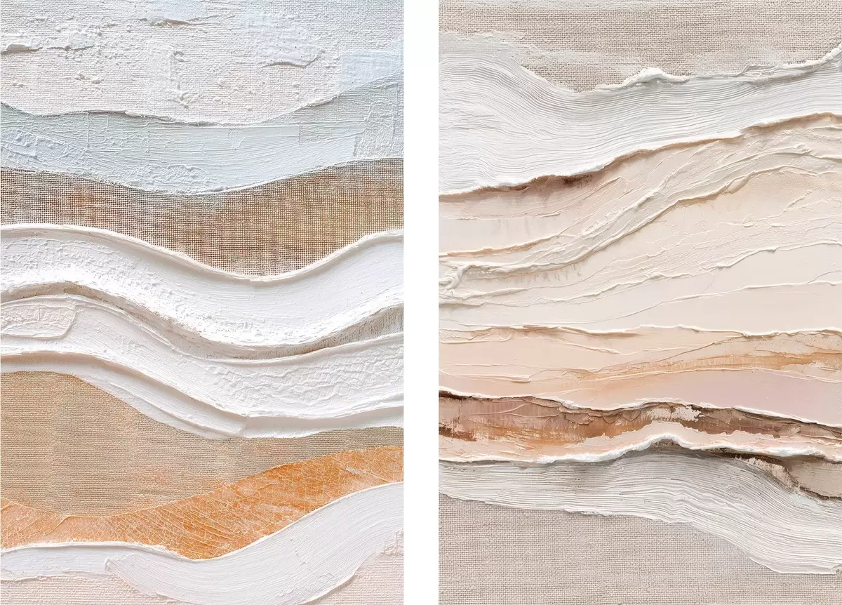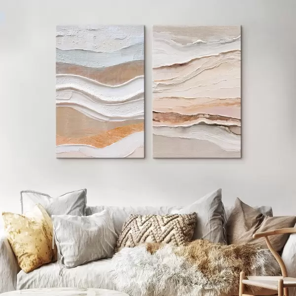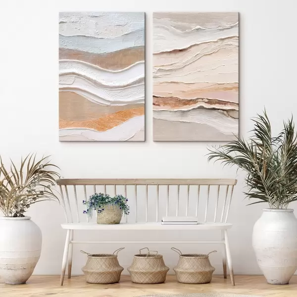 Obraz Minimalistyczny dyptyk z teksturowanymi falami na lnianym tle Nr m30031