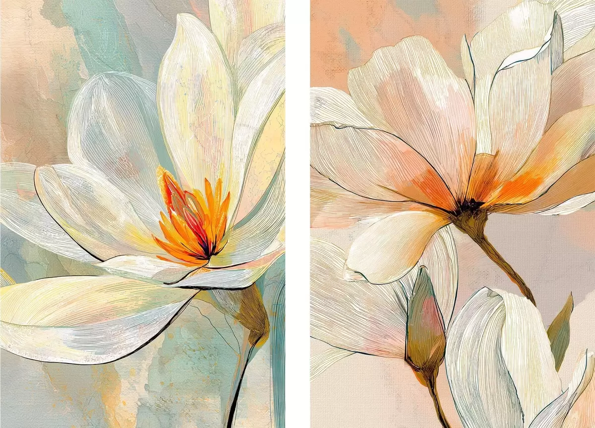 Obraz Magnolie o graficznych konturach w stylu ilustracji sztuki nowoczesnej Nr m30032