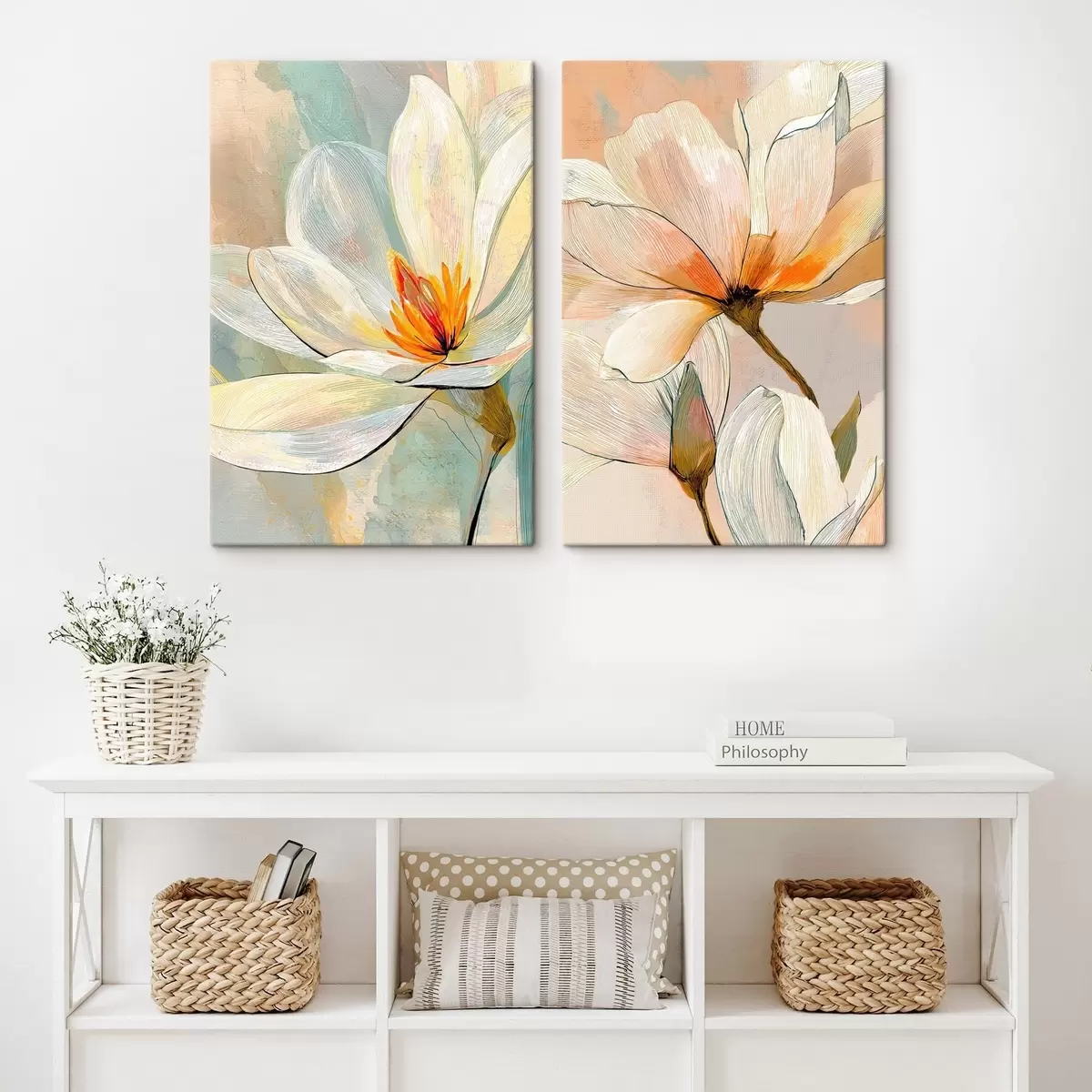 Do zamówienia dostępne są trzy rodzaje materiału: Economic Canvas - gęsty i trwały materiał do druku cyfrowego, identyczny z płótnem malarskim, wodoodporna powierzchnia, realistyczne odwzorowanie szczegółów, materiał średnioziarnisty. Premium Canvas - tekstura przypominająca płótno malarskie (przeplatane drobne nitki). Miękka, szczegółowa reprodukcja obrazu na matowej powierzchni. Eco-Premium - wysokiej jakości tkanina w 100% bawełniana. Dzięki naturalnym włóknom bawełnianym materiał jest trwały i odporny na zużycie. Doskonałe odwzorowanie kolorów i szczegółów.