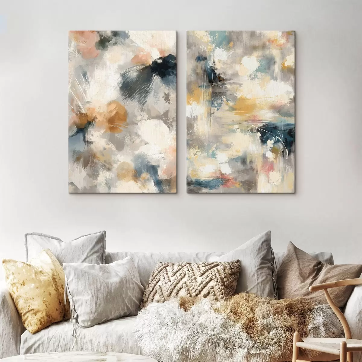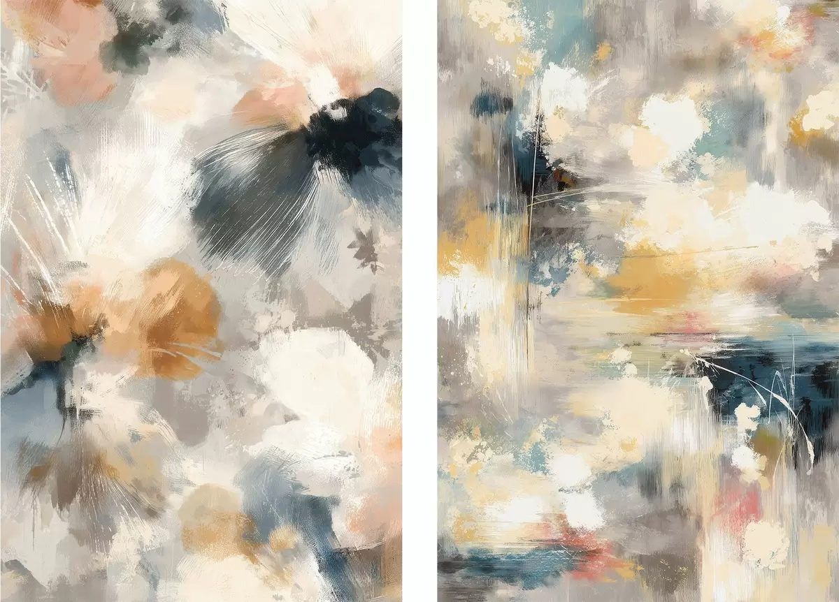 Obraz Dyptyk z rozmytych form kwiatowych w stylu sztuki współczesnej Nr m30033