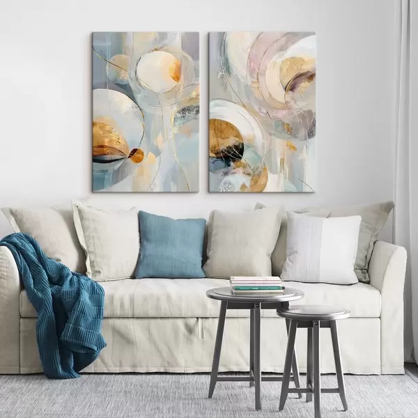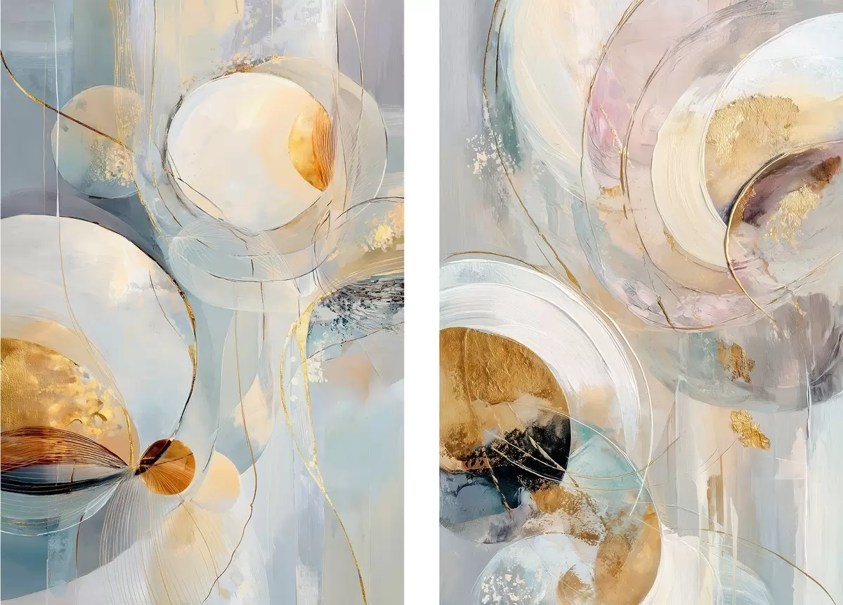 Obraz Artystyczny dyptyk z półprzezroczystymi okręgami i wyrazistymi pociągnięciami pędzla Nr m30038