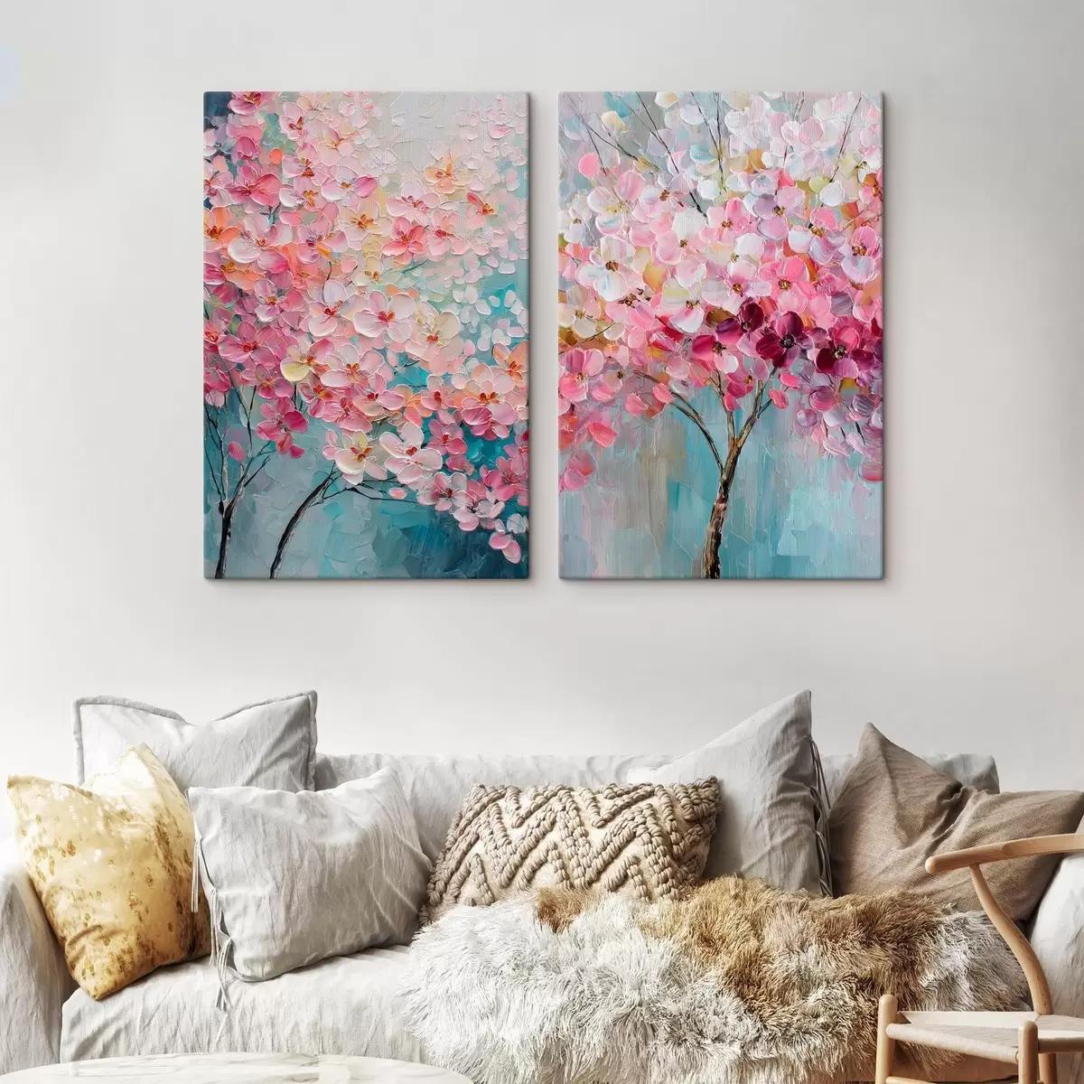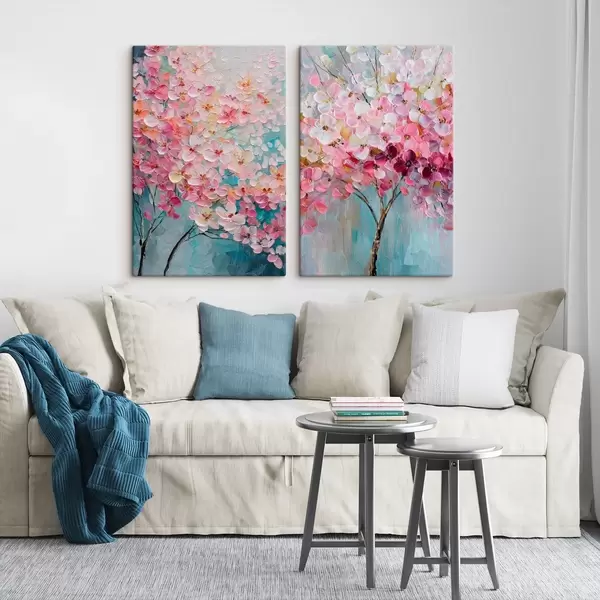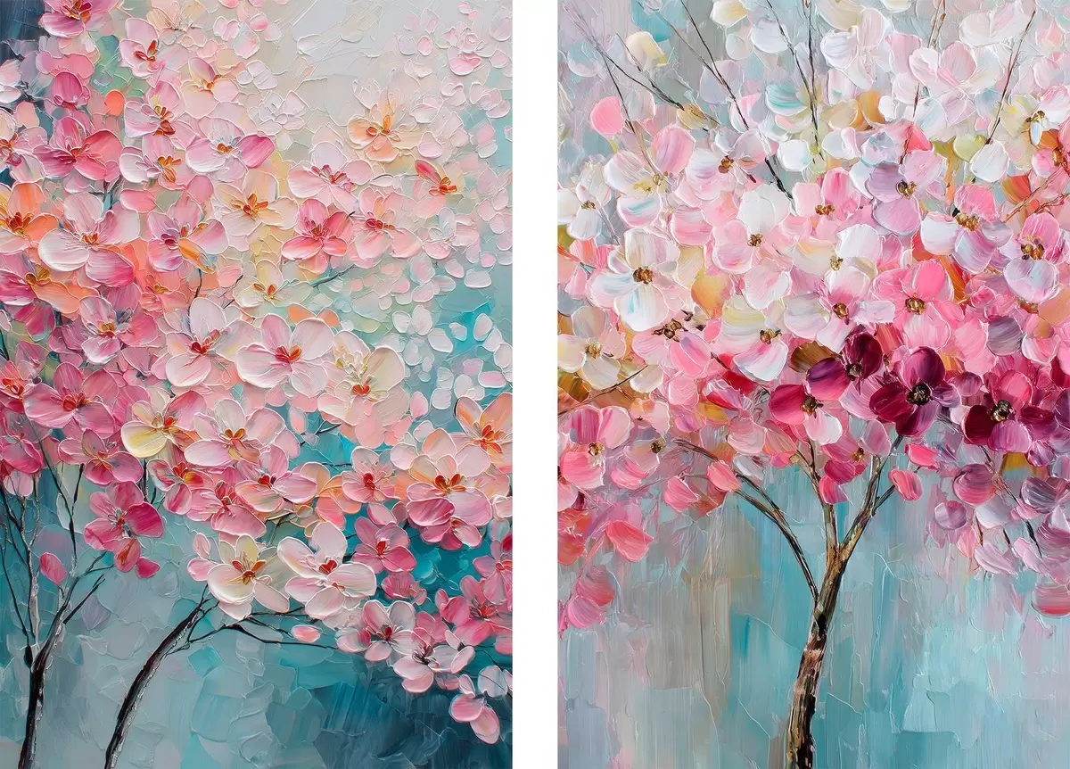 Obraz Kwitnące drzewo z różowymi kwiatami w stylu malarstwa olejnego Nr m30040