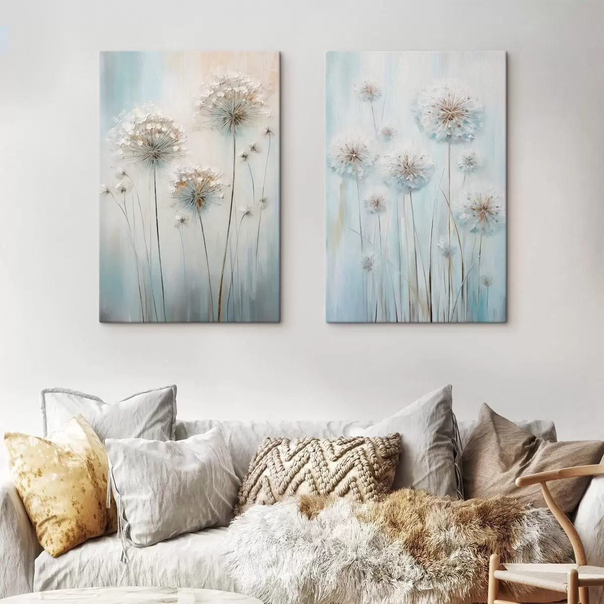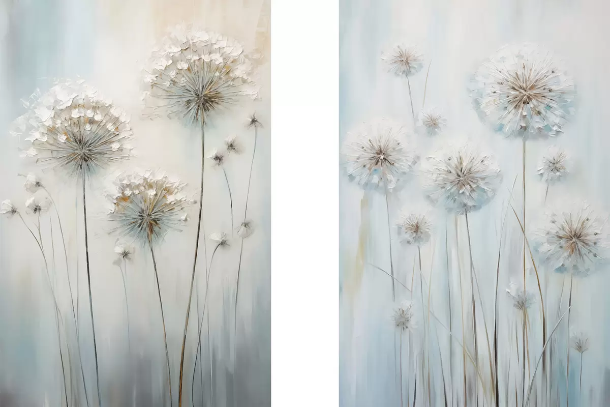 Obraz Teksturowany styl malowania mleczy na delikatnym niebiesko-białym tle Nr m30048