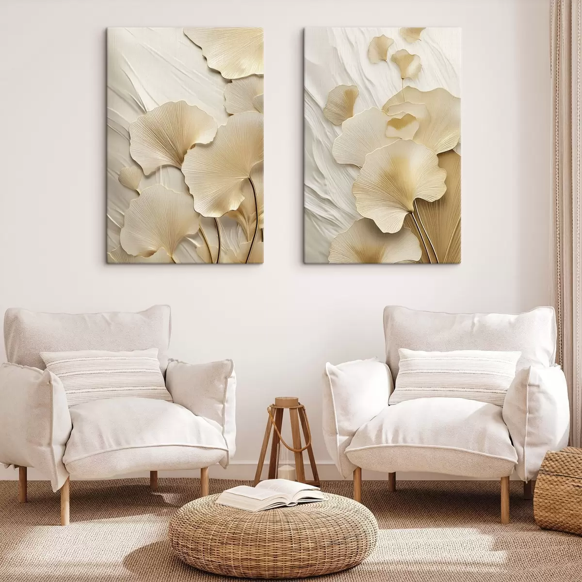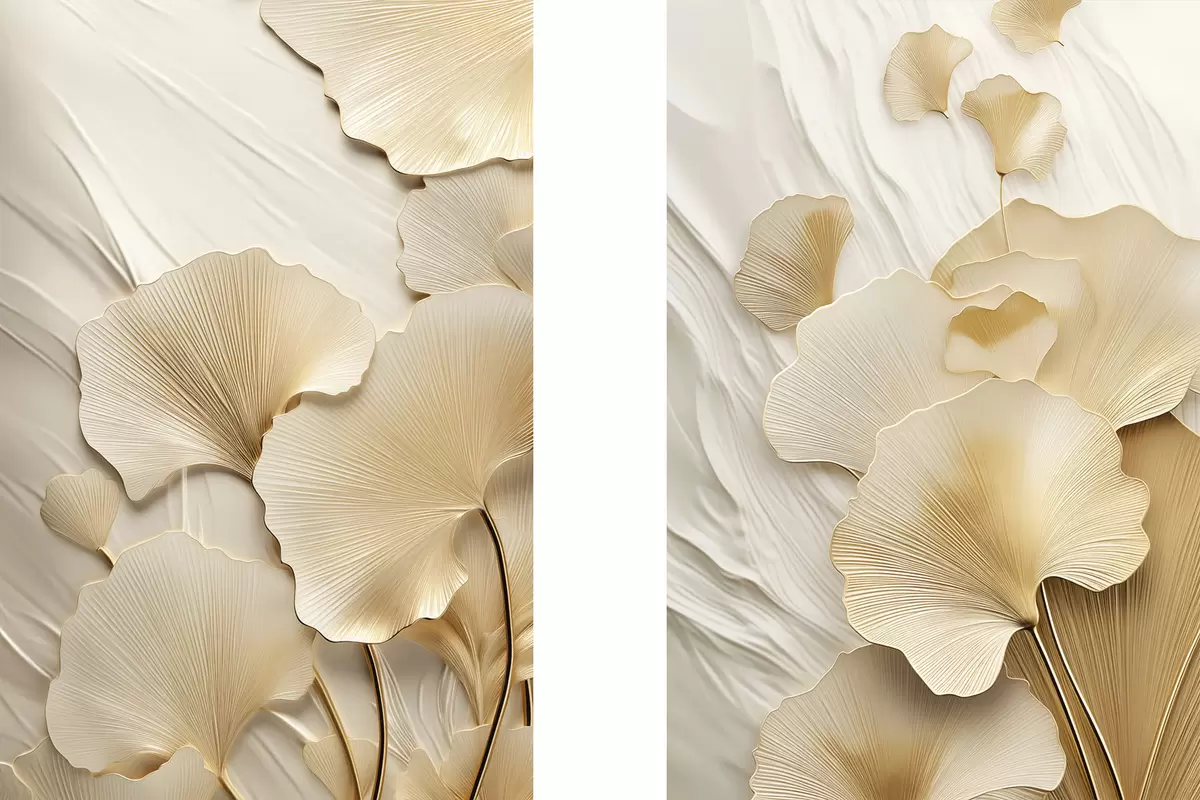 Obraz Abstrakcyjne liście miłorzębu na teksturowanym, jasnym tle, elegancka i abstrakcyjna kompozycja Nr m30054