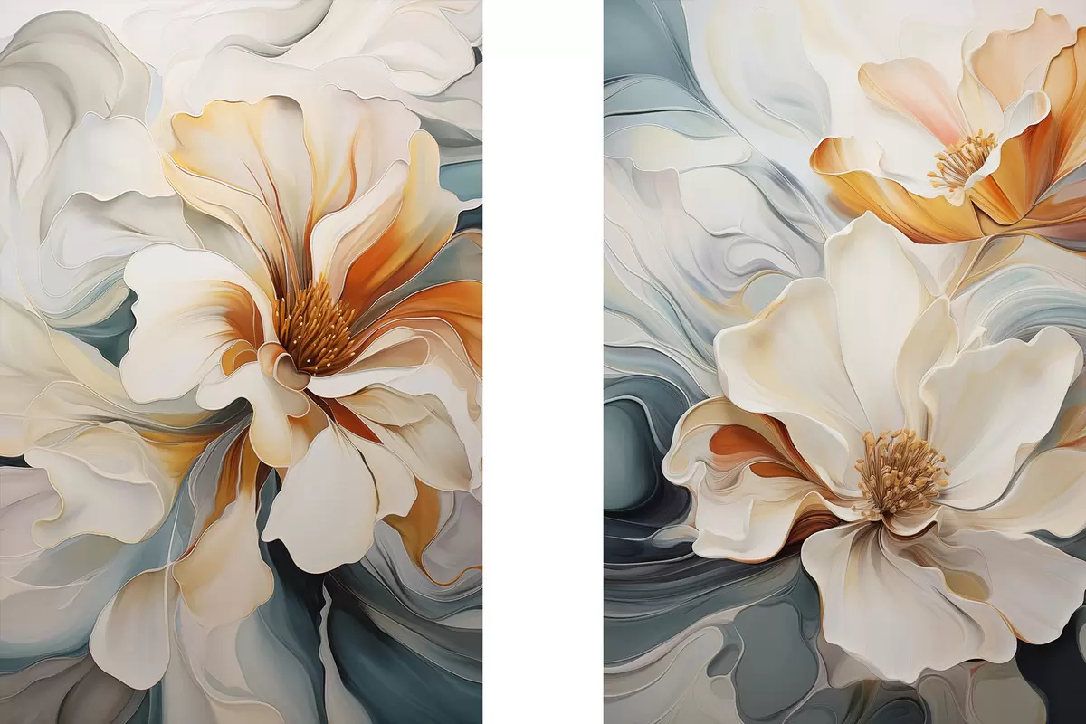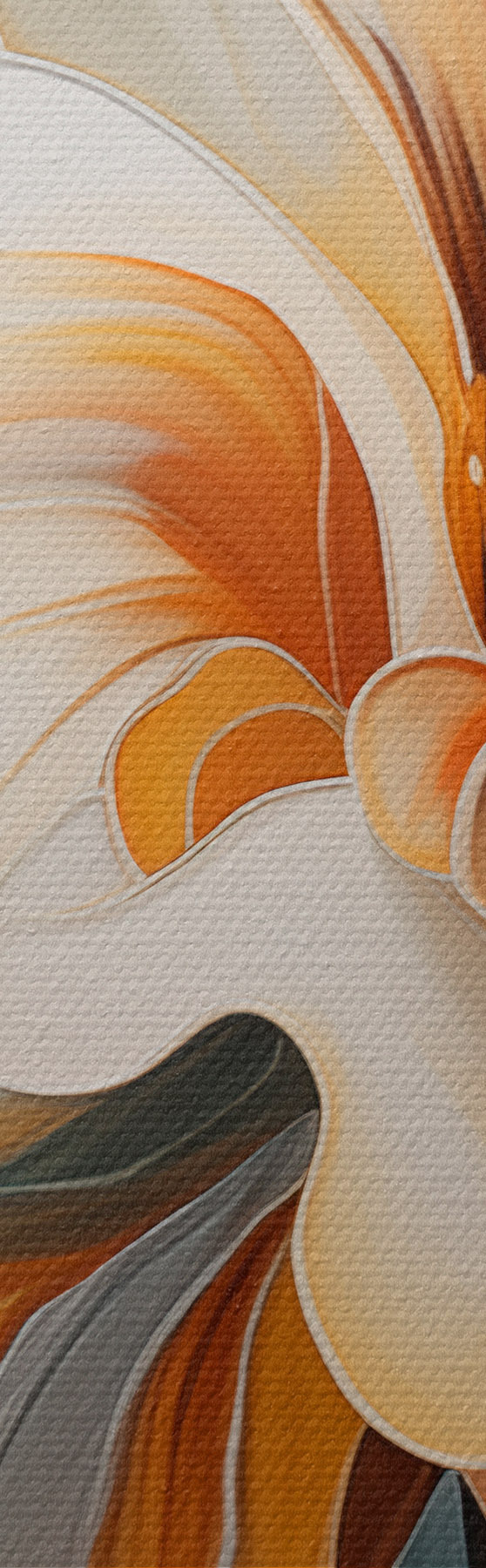 Obraz Abstrakcyjny duży kwiat z białymi, pomarańczowymi i turkusowymi płatkami, teksturowane tło Nr m30059