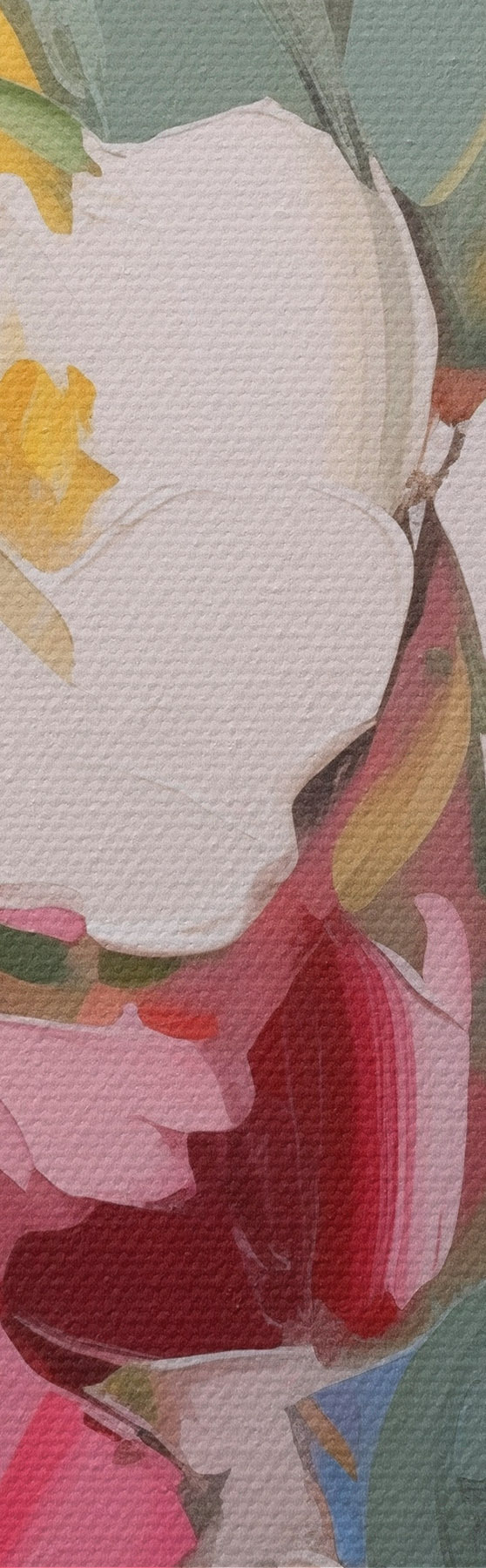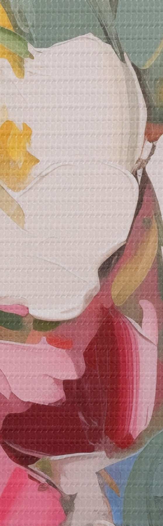 Drobny splot nici na tym płótnie przypomina powierzchnię profesjonalnych płócien artystycznych.