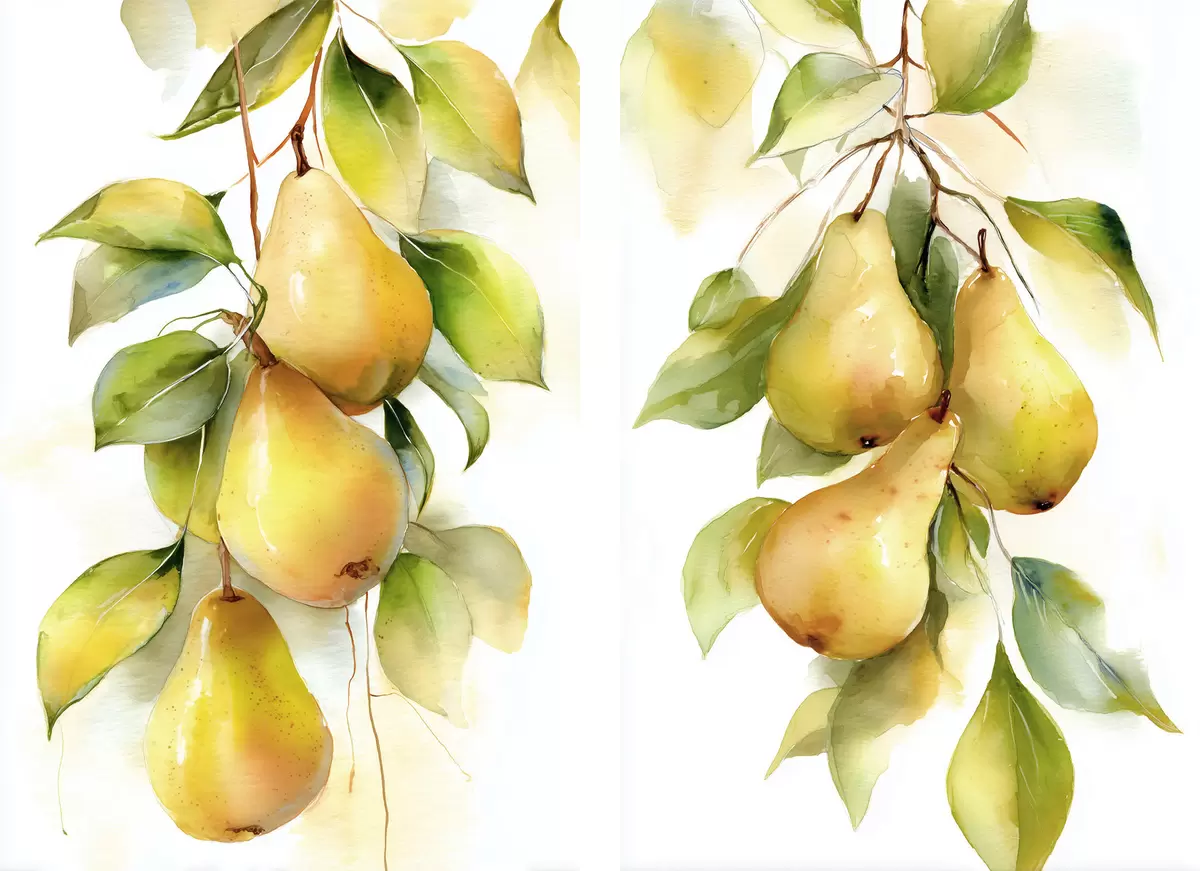 Obraz soczyste żółte gruszki w stylu akwareli Nr m30088