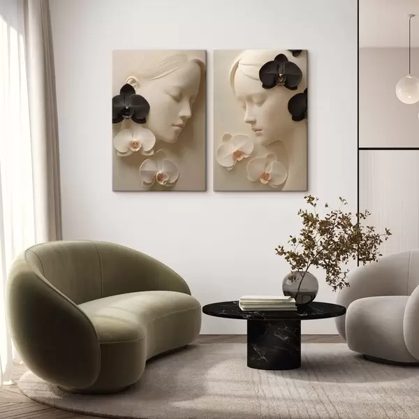 Obraz dziewczyna z orchideami w stylu płaskorzeźby Nr m30093