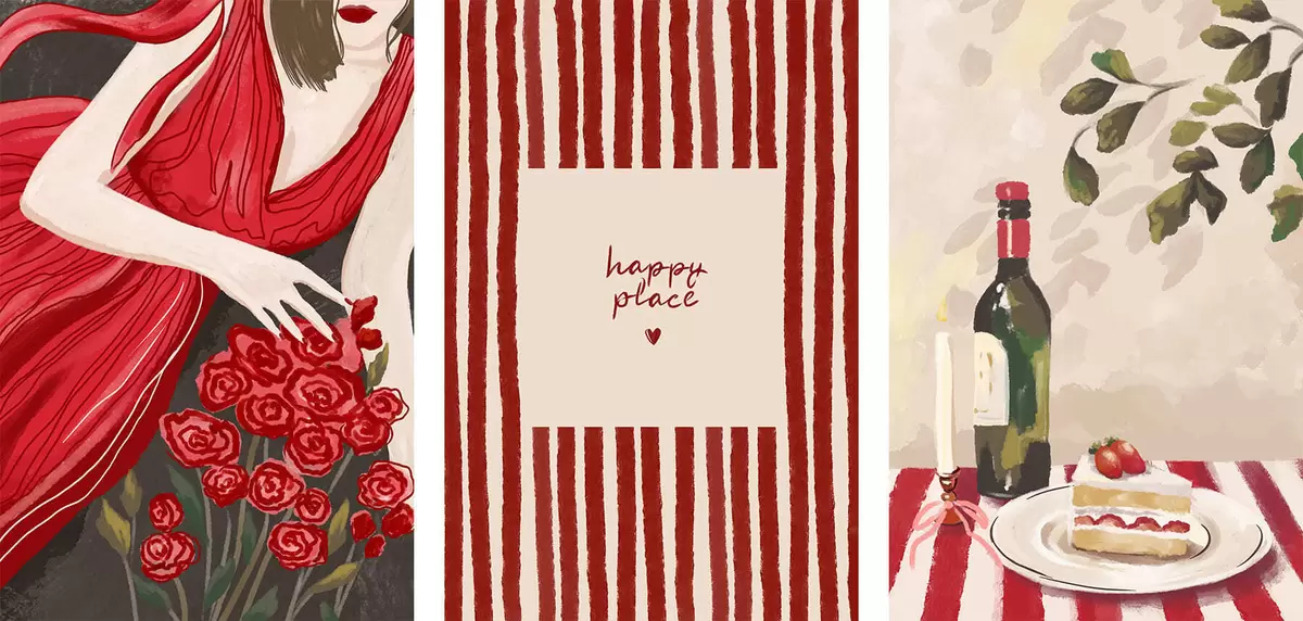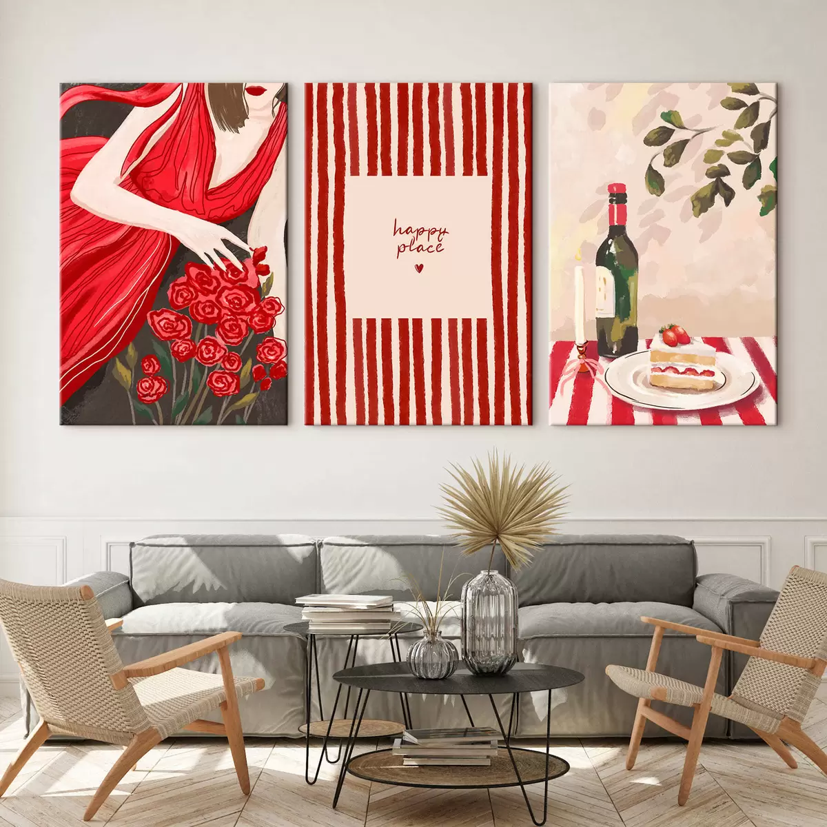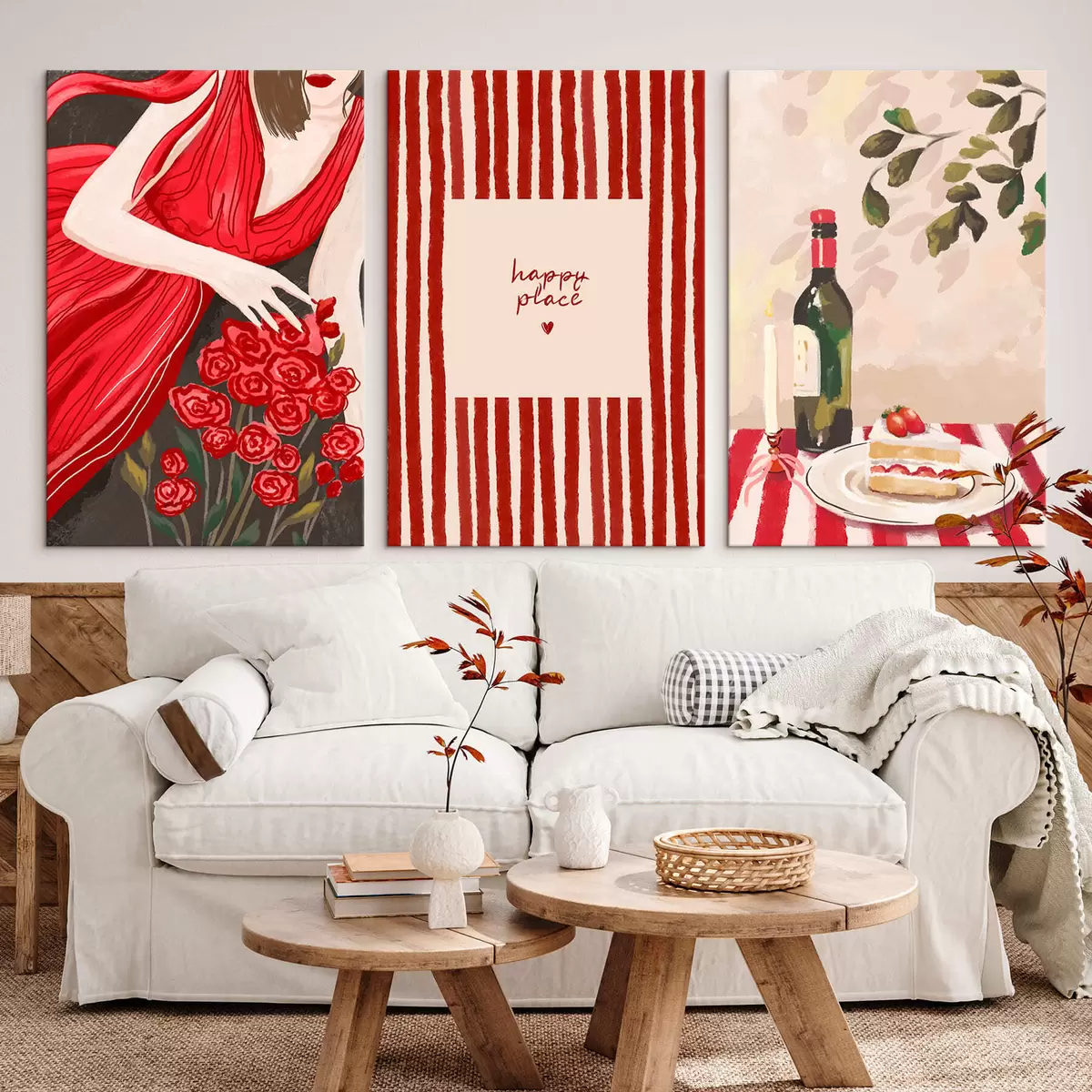 Obraz Kobieta z różami, plakat w paski i stół Nr m30099