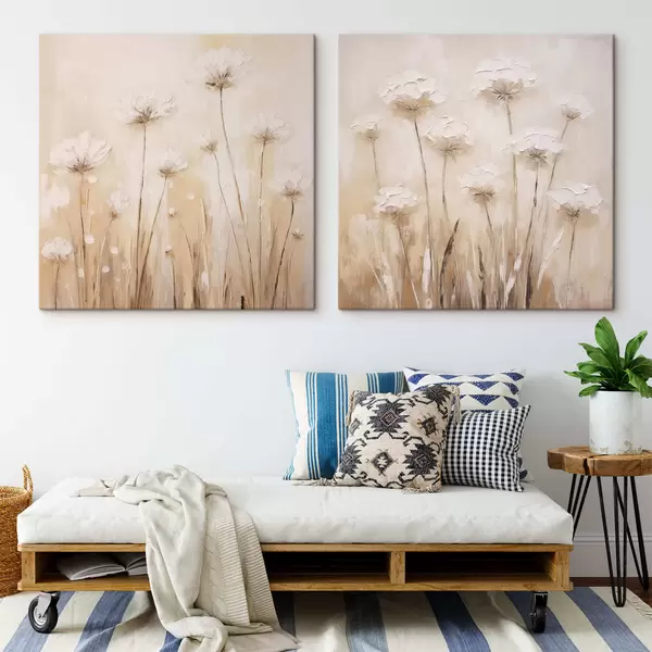 Obraz można delikatnie przetrzeć suchą, miękką szmatką lub gąbką; nie zaleca się używania mokrych produktów. Użycie wilgotnej gąbki jest dozwolone tylko wtedy, gdy obraz został polakierowany.