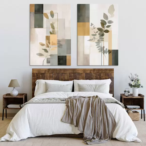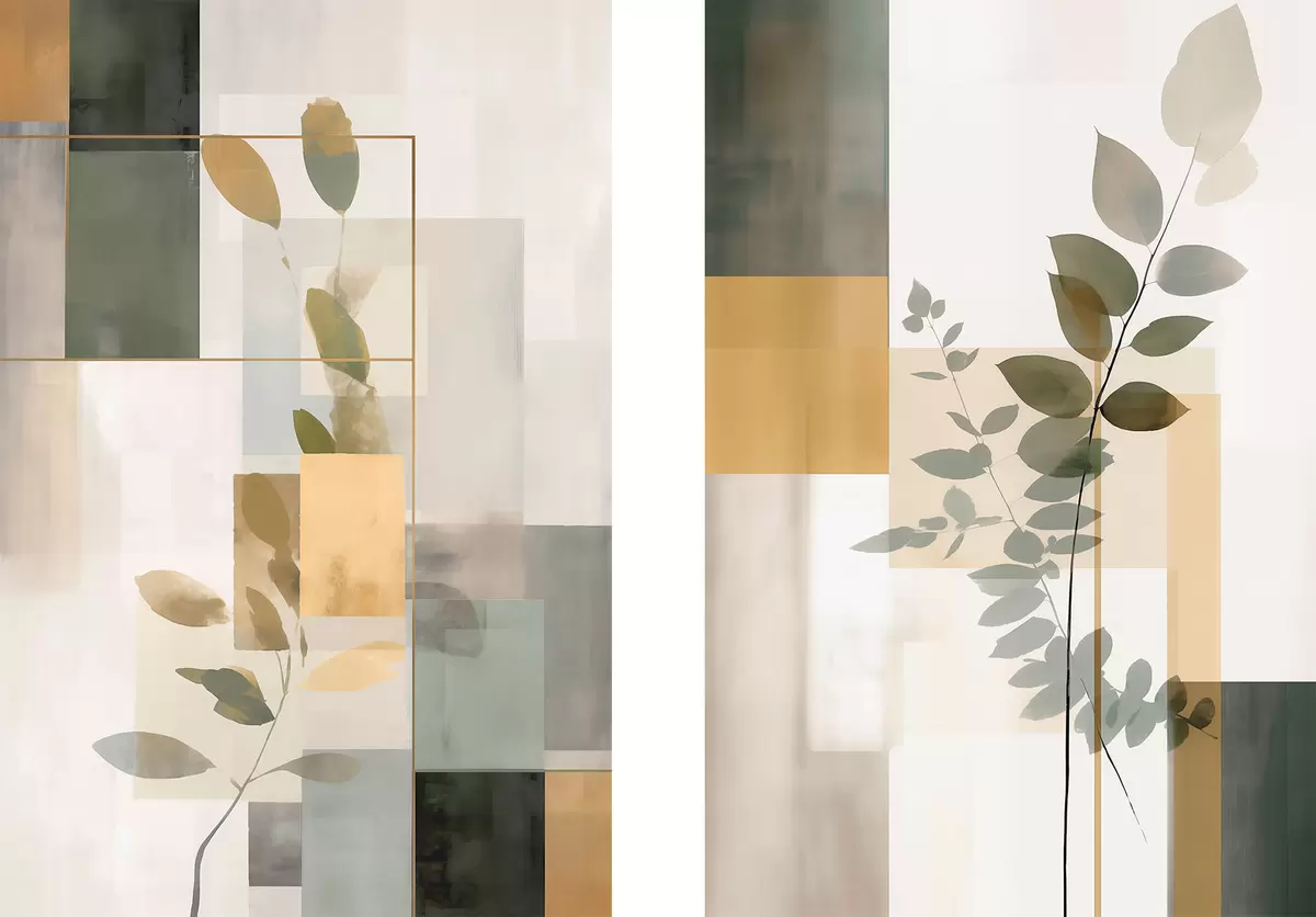 Obraz Geometryczna abstrakcja z gałęziami liści Nr m30128
