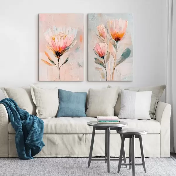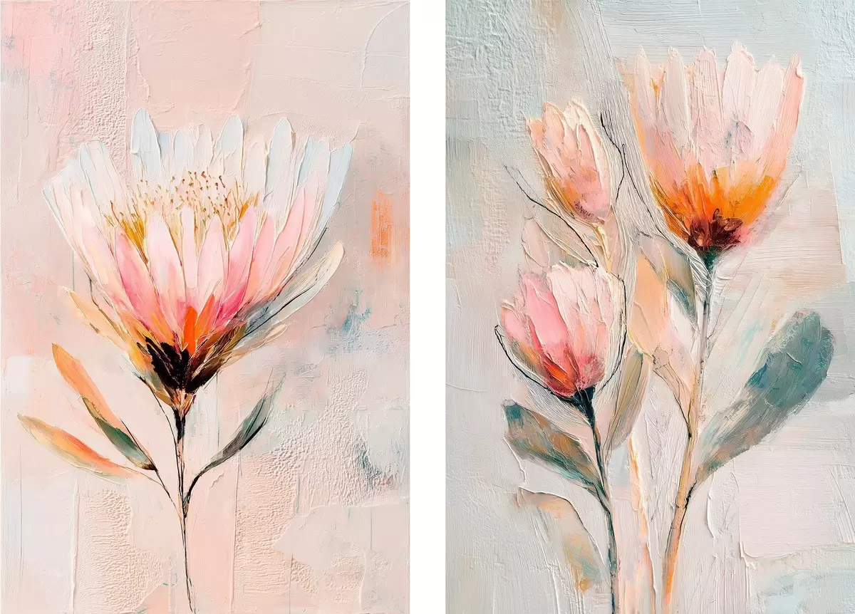 Obraz Kompozycja kwiatowa w pastelowych barwach z wyrazistymi pociągnięciami pędzla w stylu sztuki współczesnej Nr m30140
