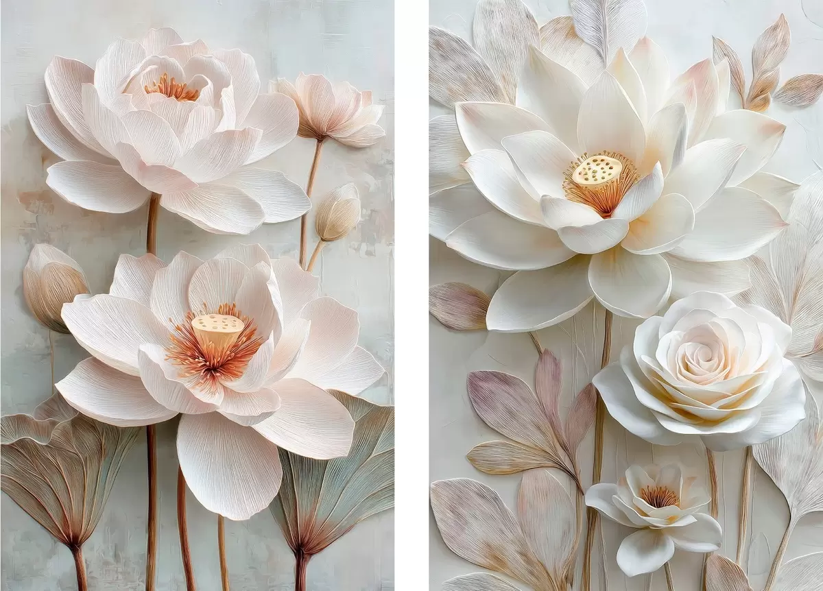 Obraz Wyrafinowana kompozycja kwiatowa z teksturowanymi płatkami w stylu ilustracji 3D Nr m30143