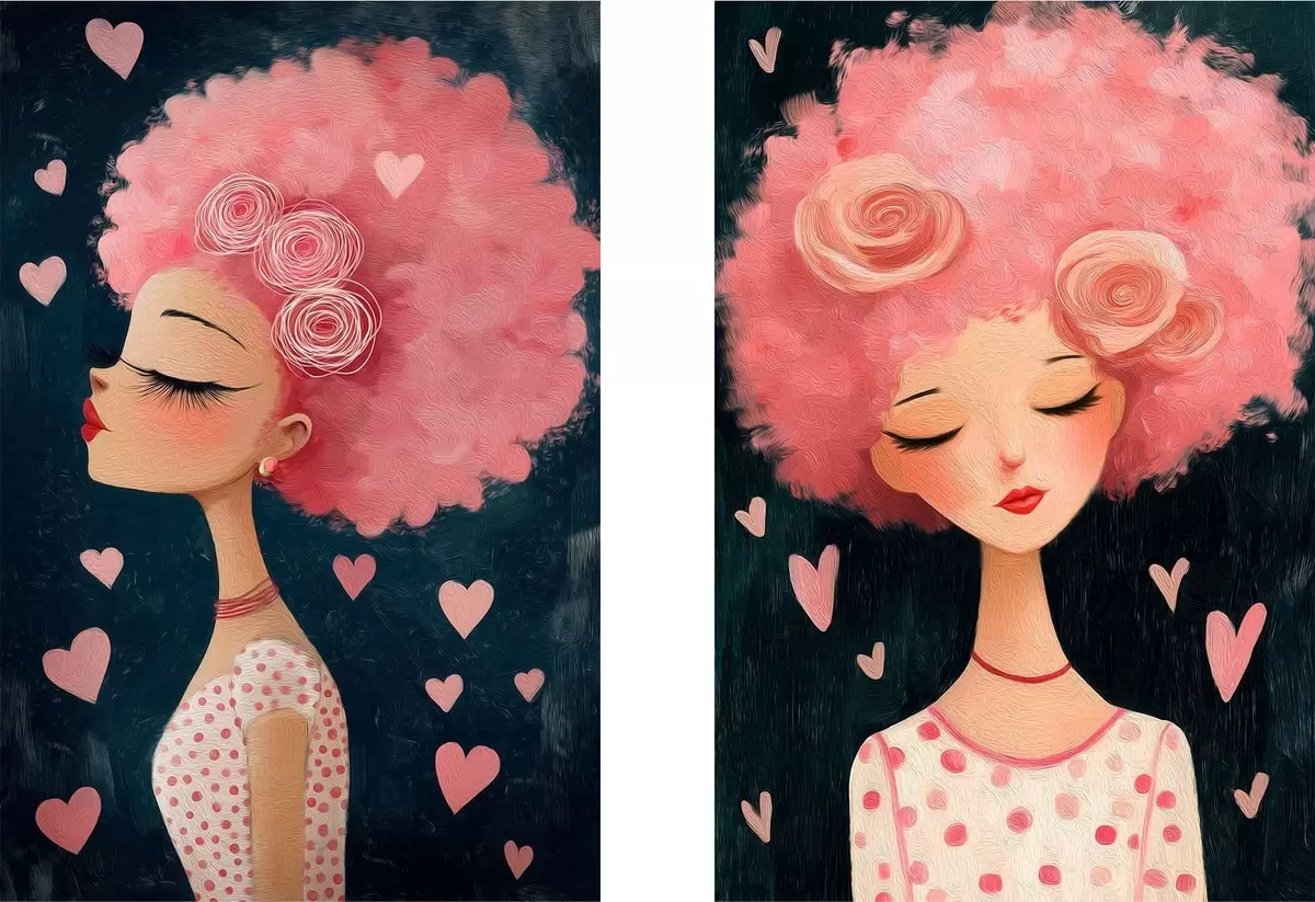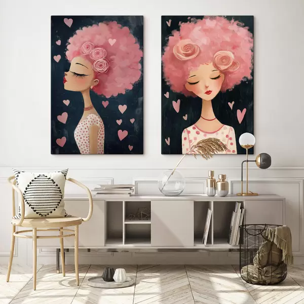 Obraz Dziewczyna z różowymi włosami i sercami Nr m30156