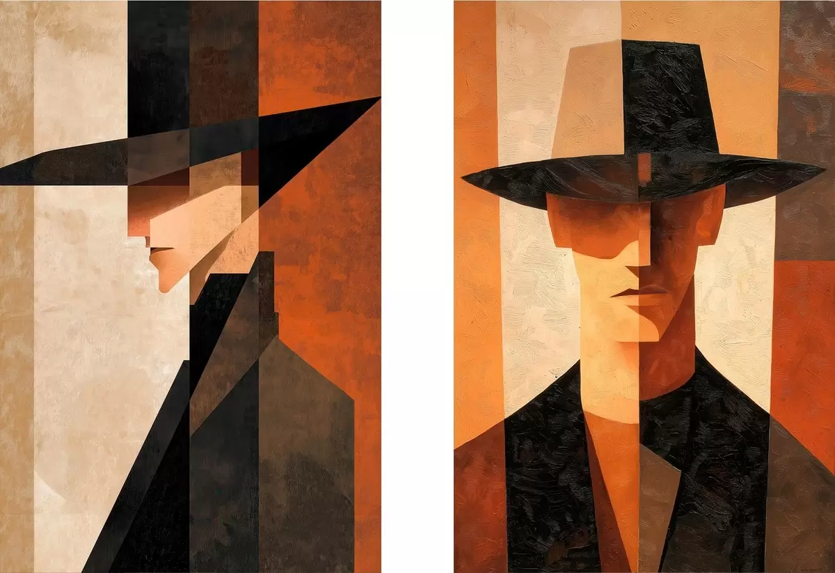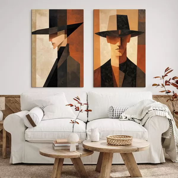 Obraz Geometryczny portret mężczyzny w kapeluszu Nr m30157