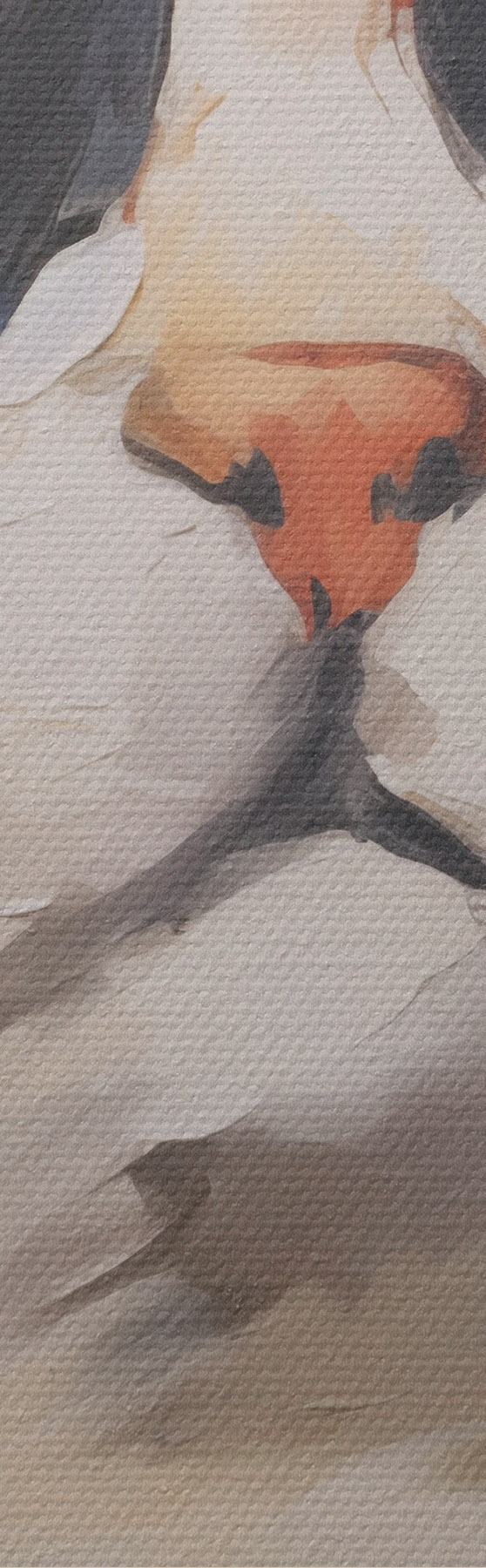 Drobny splot nici na tym płótnie przypomina powierzchnię profesjonalnych płócien artystycznych.