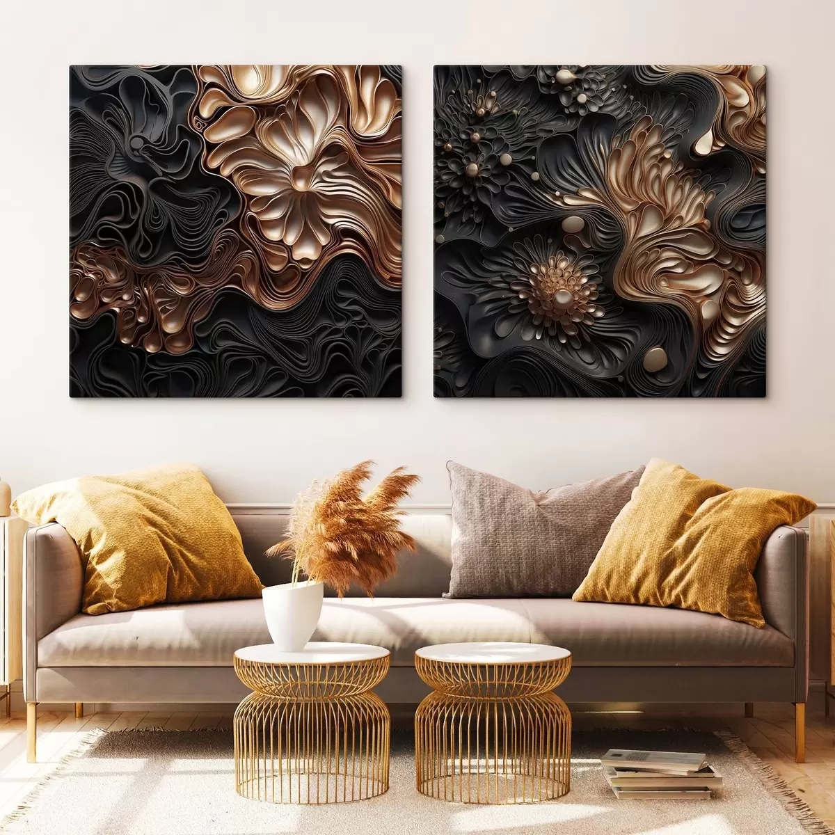 Obraz Abstrakcyjne, płynne, organiczne ciemne kształty tworzące teksturowaną sztukę współczesną Nr m30196