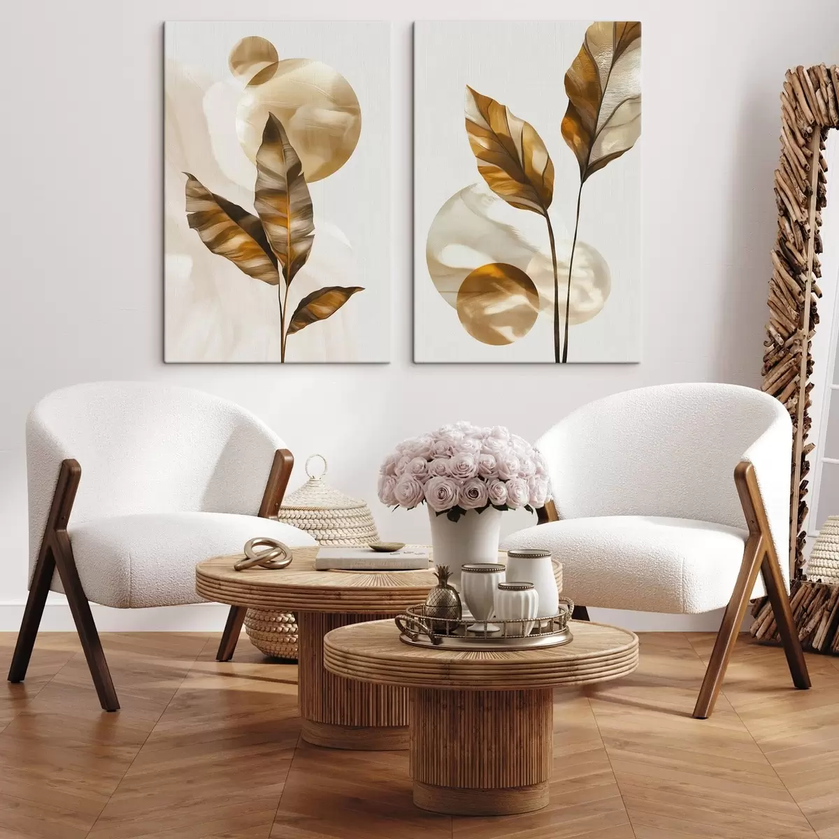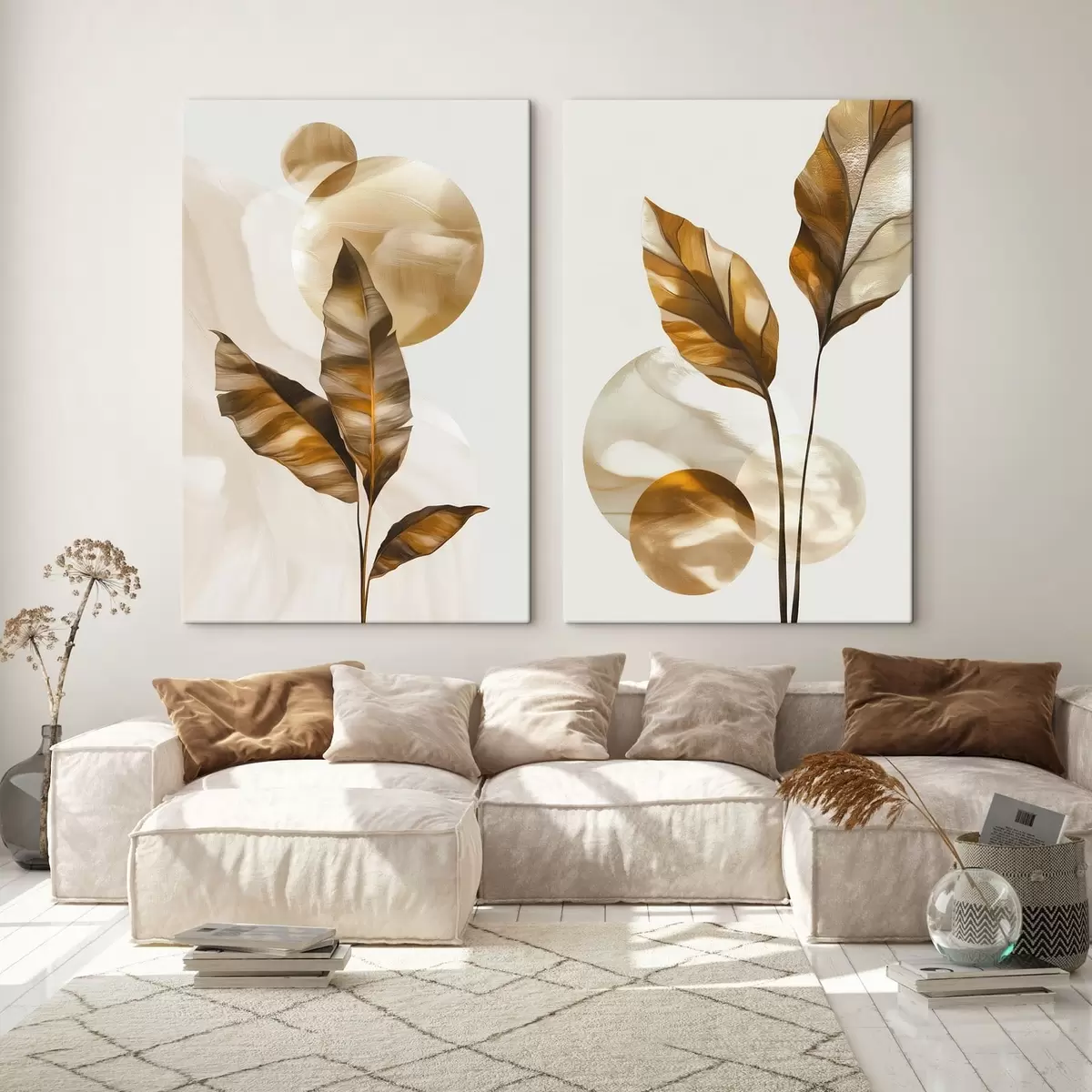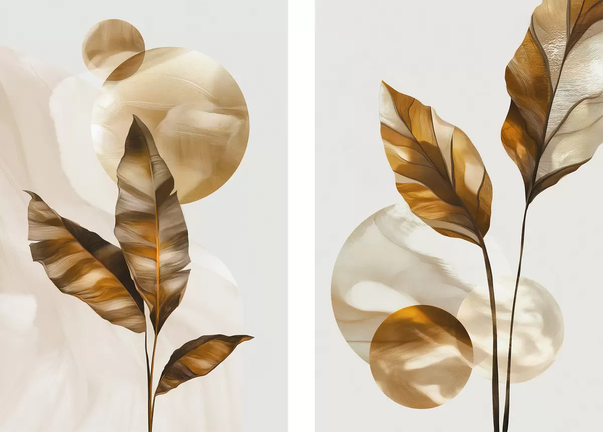 Obraz Abstrakcyjna kompozycja z liści i okręgów Nr m30254
