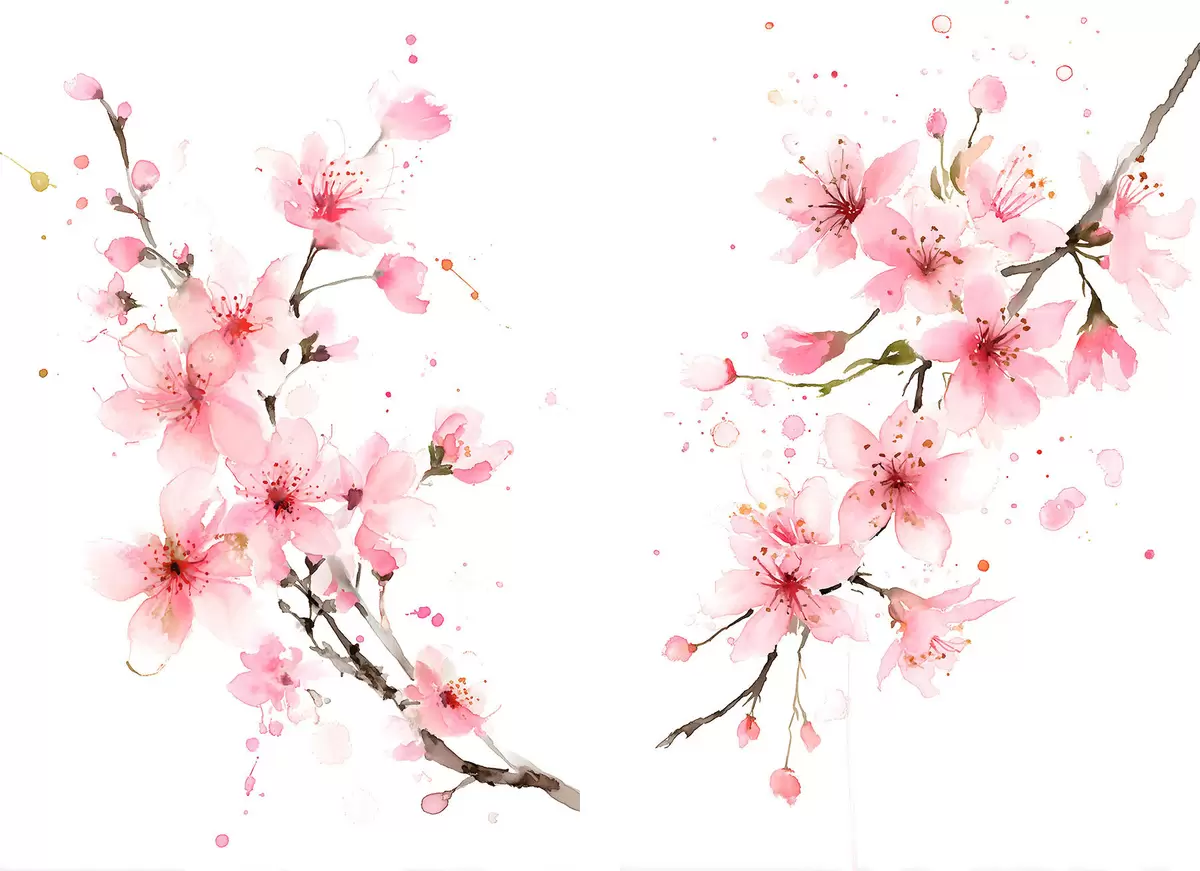 Obraz kwitnące gałęzie moreli w stylu akwareli Nr m30257