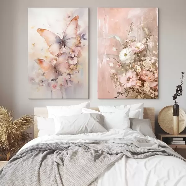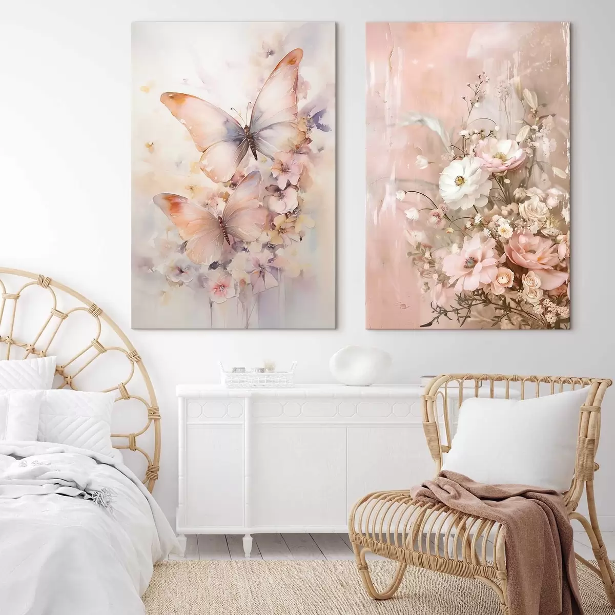Obraz Kwiaty z motylami, delikatne wnętrze Nr m30267