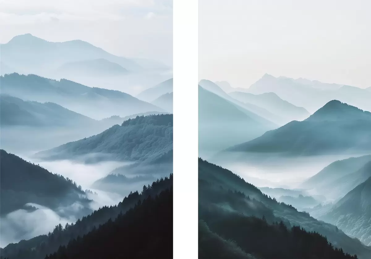 Obraz Góry we mgle, rozległa przestrzeń Nr m30269
