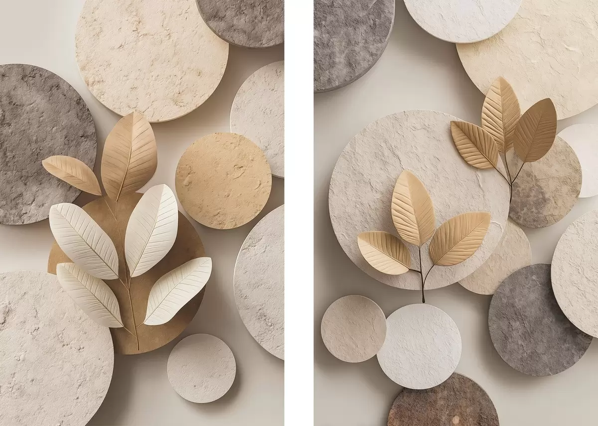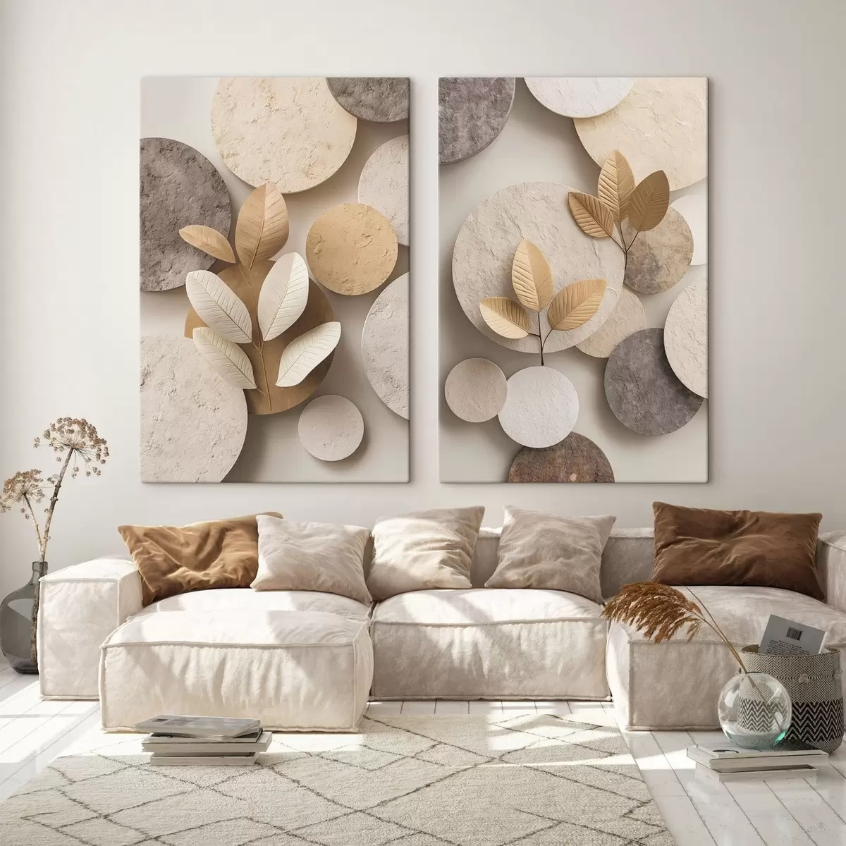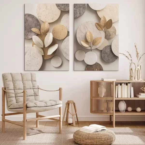 Obraz Kompozycje z liśćmi i okręgami Nr m30292