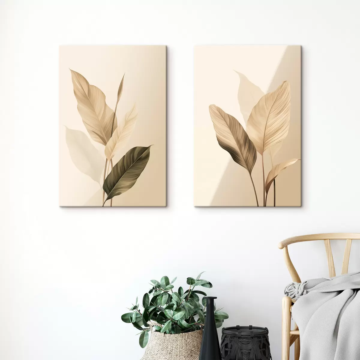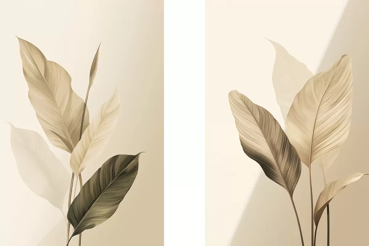 Obraz Duże tropikalne liście w odcieniach beżu i brązu, jasne tło Nr m30313