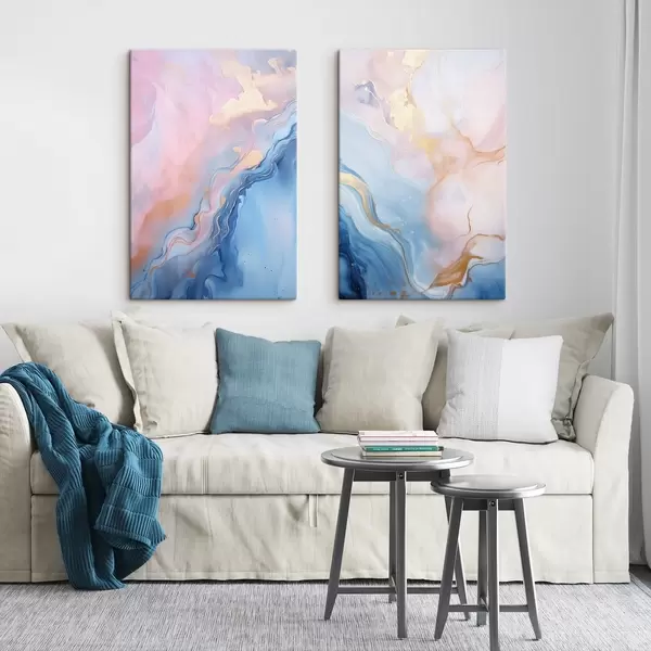 Obraz Abstrakcyjna sztuka płynna o fakturze, z wirującymi wzorami w odcieniach różu i błękitu Nr m30315